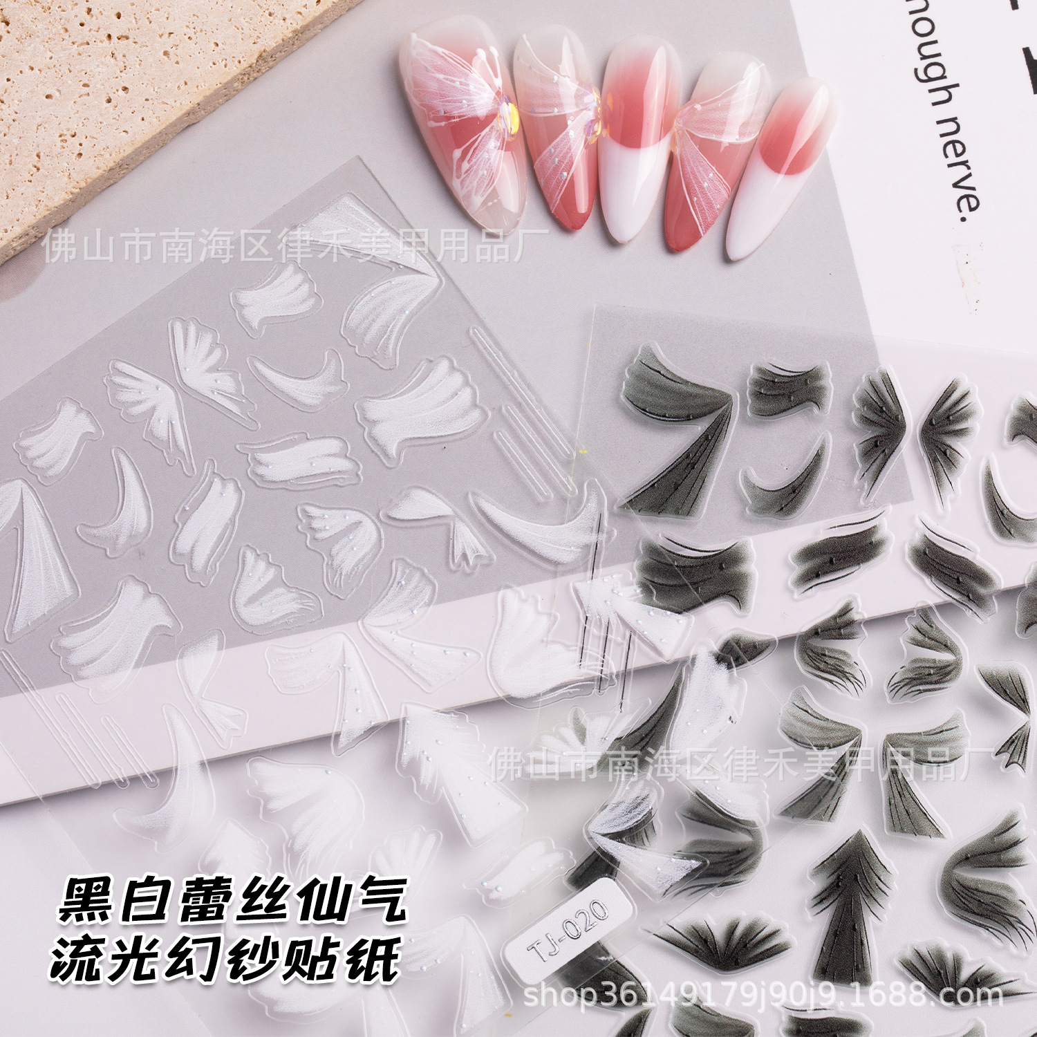 新しいストリーマ幻砂ネイルシール5Dレリーフ立体白黒レース抽象フレンチ爪貼りバックゴム卸売り