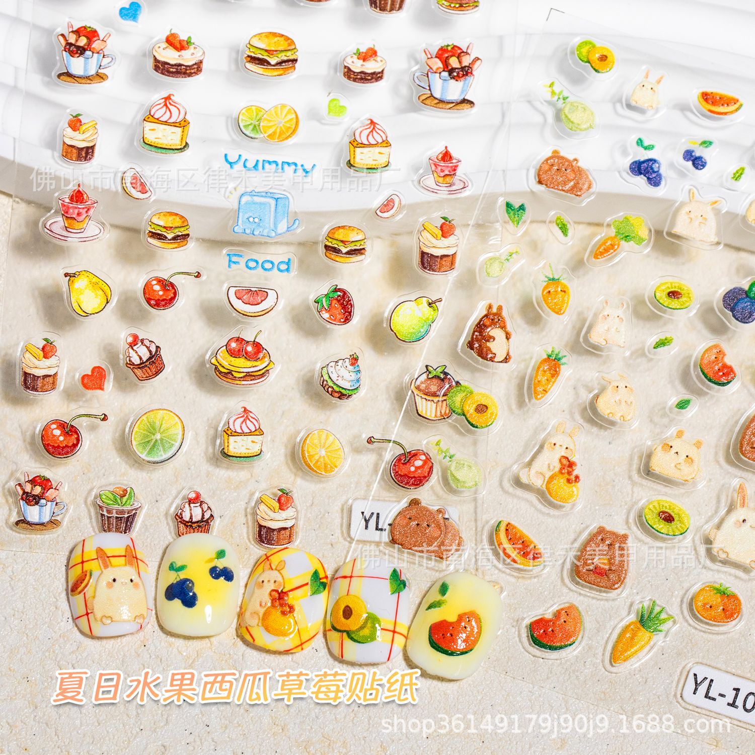 夏のデザート果物スイカイチゴネイルシールハンバーグケーキさくらんぼニンジンレリーフ立体ネイルシール