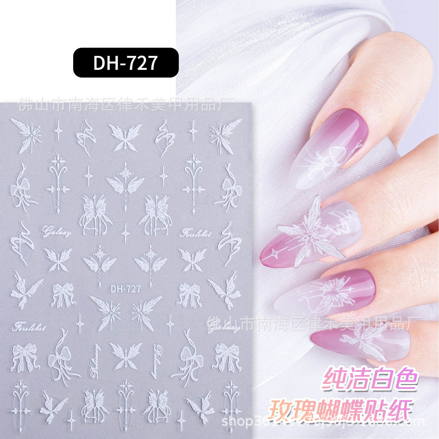 日本製白バラ蝶ネイルアートステッカー立体薄型透明純白優しい白蝶スターネイルアートステッカー粘着裏地