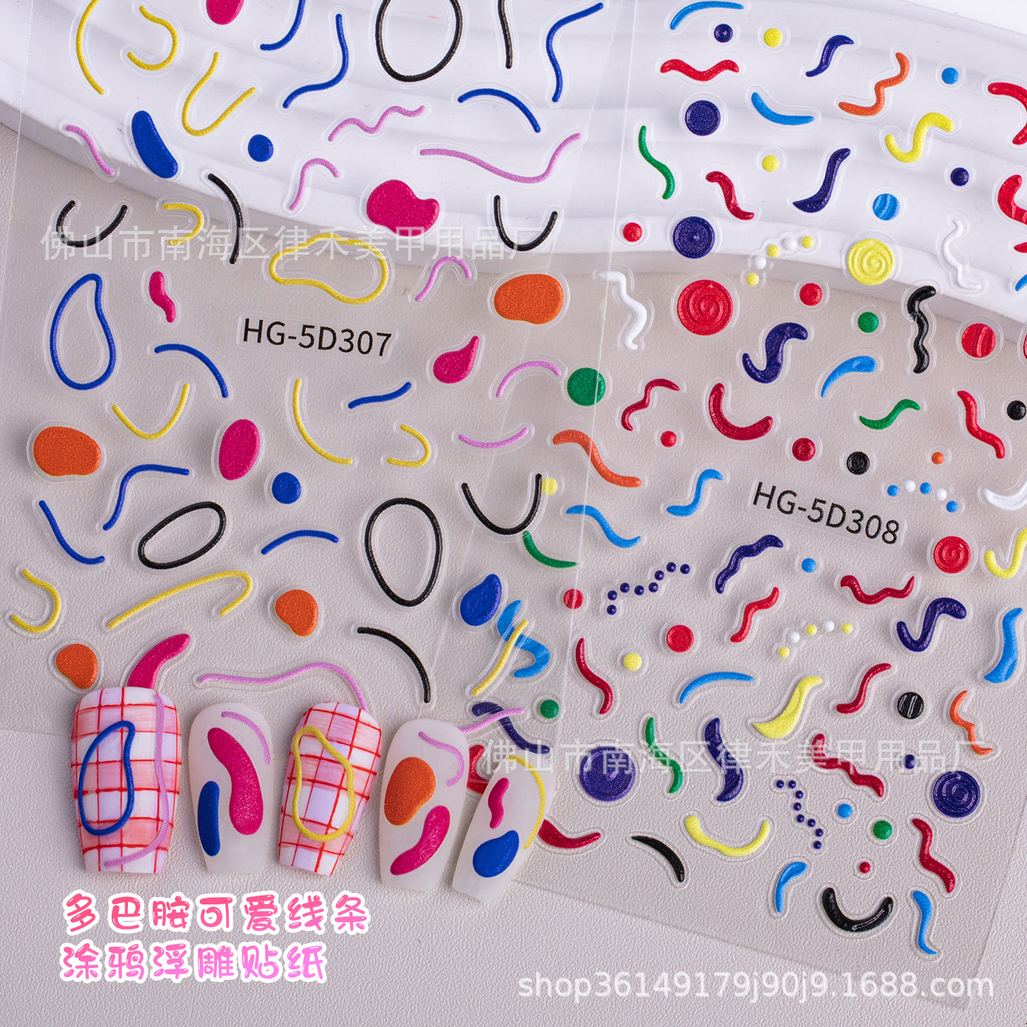 ネットレッドinsドーパミンかわいいラインカラー落書きネイルシール立体レリーフシンプルなカラーシール