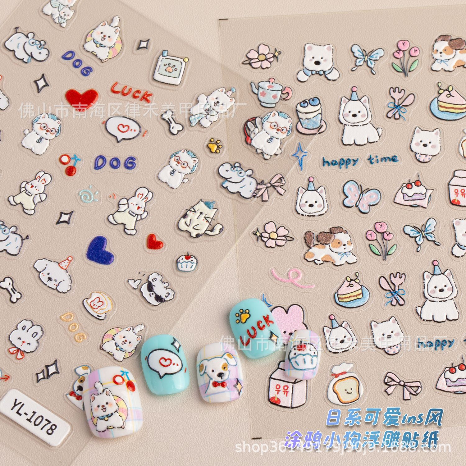 ネットの赤い漫画のかわいい子犬のネイルシールの立体のかわいい子犬のカバの小さい白いウサギの星の愛は卸売りを貼ります。