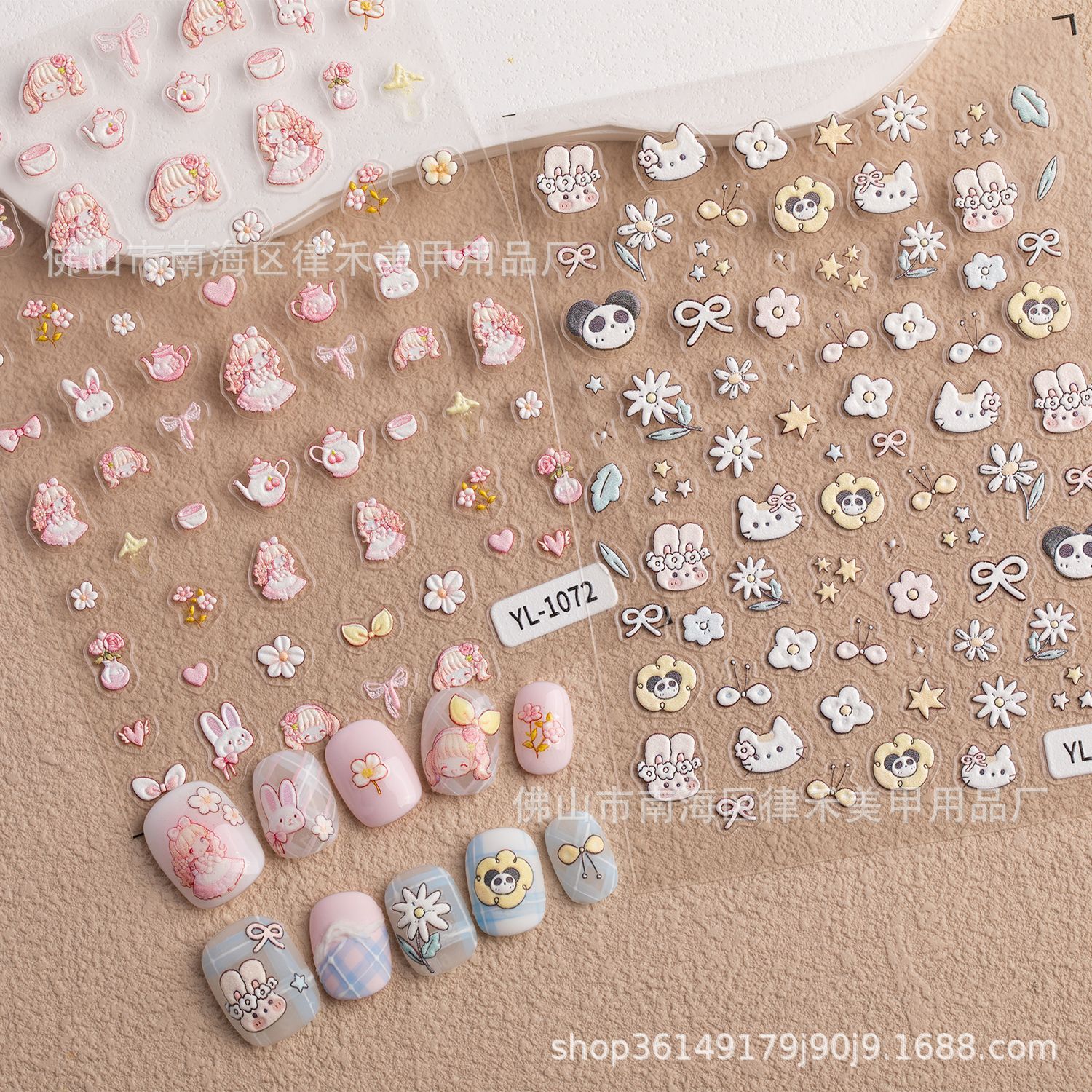 新しい5Dレリーフ漫画かわいい子供の面白いネイルシール立体漫画熊子猫犬猫爪貼り