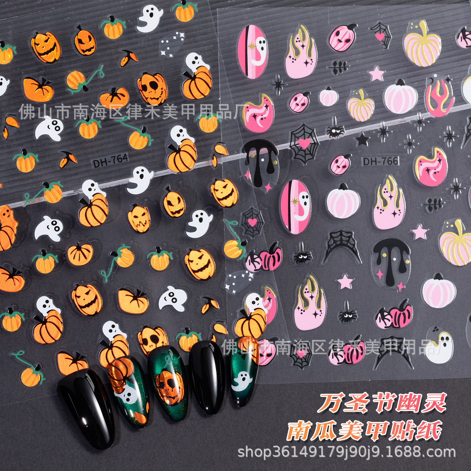 国境を越えた新型ハロウィーンカボチャ幽霊ネイルシールかわいい幽霊鬼火蜘蛛網幽霊爪バックテープ