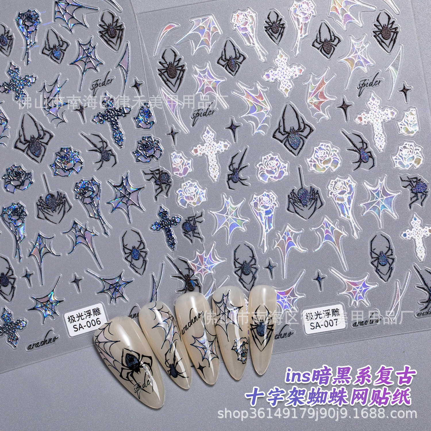 国境を越えて人気ins暗黒系クロスネイルシール復古クモ暗黒クモの巣星極光レリーフ