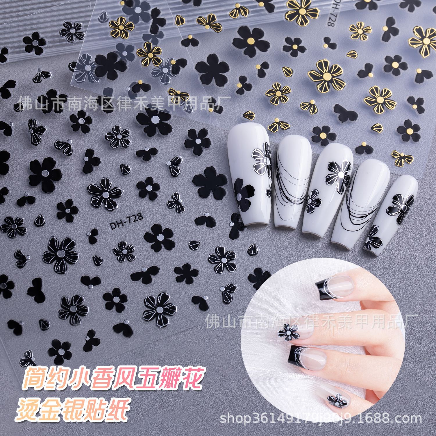 新商品の小香風五弁花ネイルシール小清新箔押しシンプルなツバキ花背ゴム爪シール