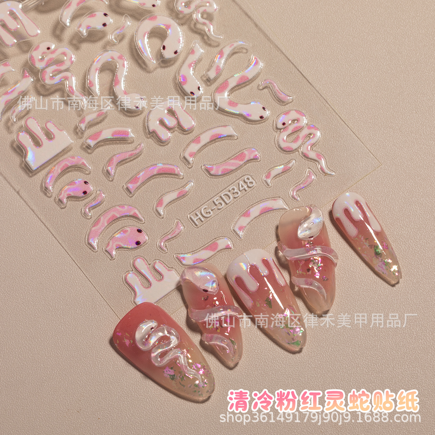 新商品の霊動かわいいピンクの霊蛇のネイルシールの立体レリーフネットの赤い流行の漫画の爪の装飾のゴム
