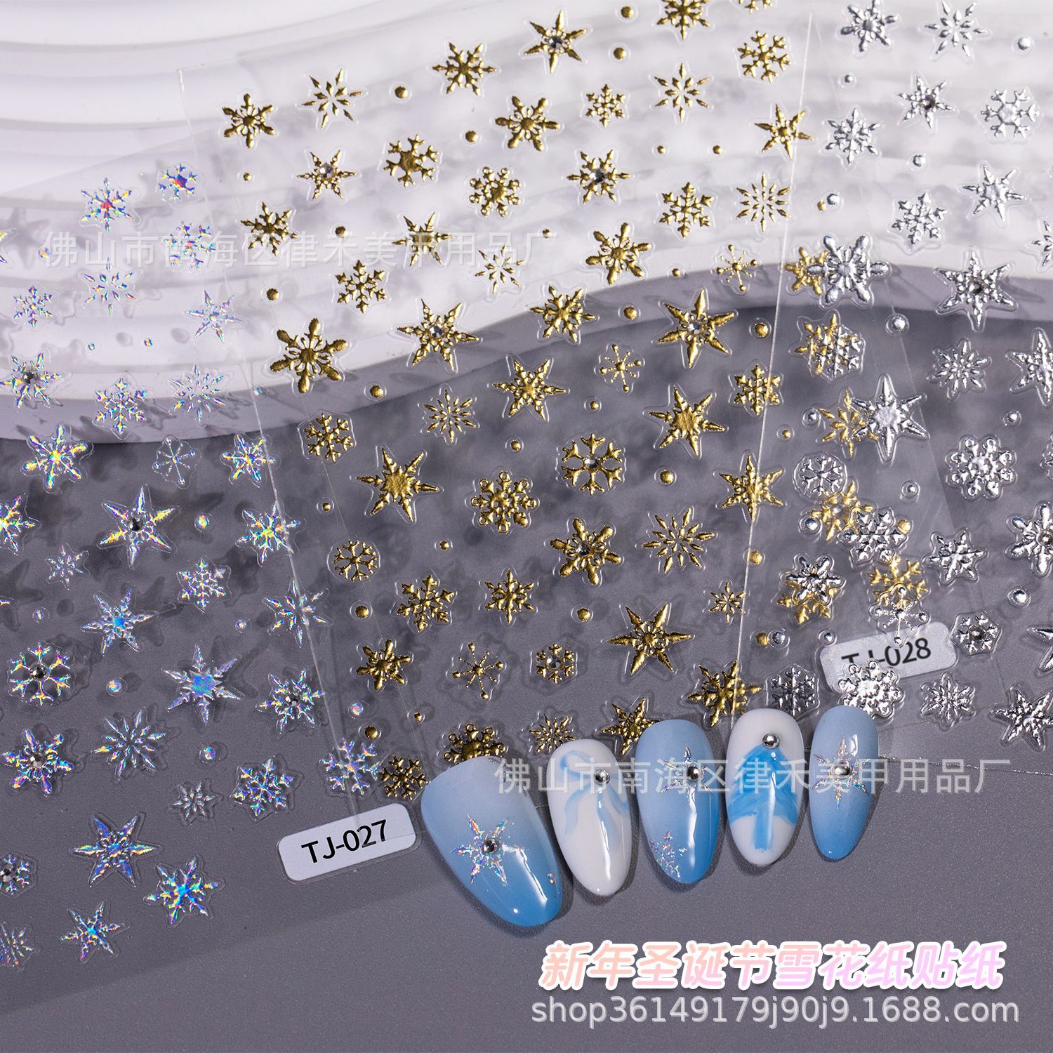 国境を越えた新しいクリスマスネイルシール極光レーザー雪だるまクリスマスツリーヘラジカ雪花爪バックシール