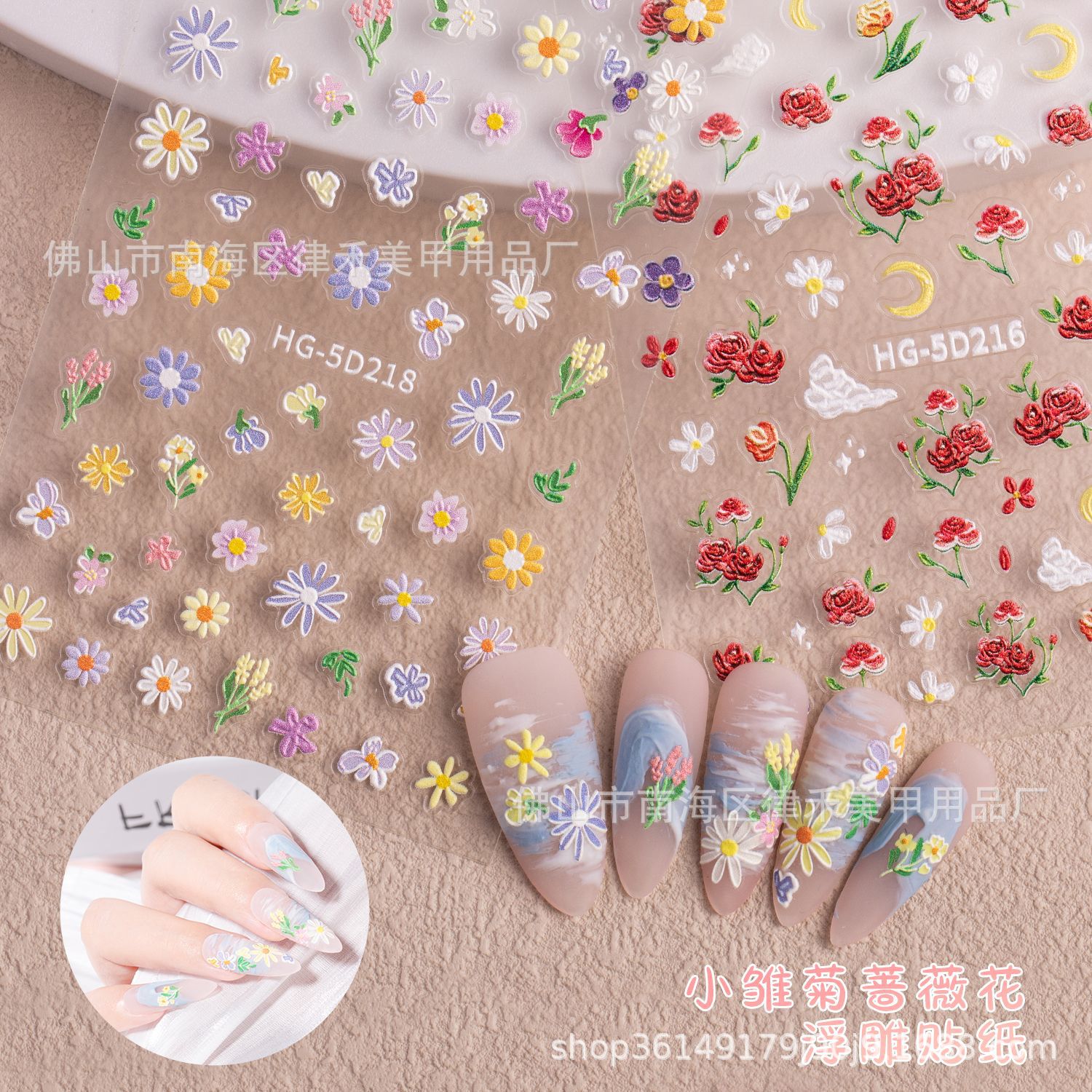 5D新型デイジーカラフル野花ネイルシール浮き彫り立体小清新五葉花月爪シール