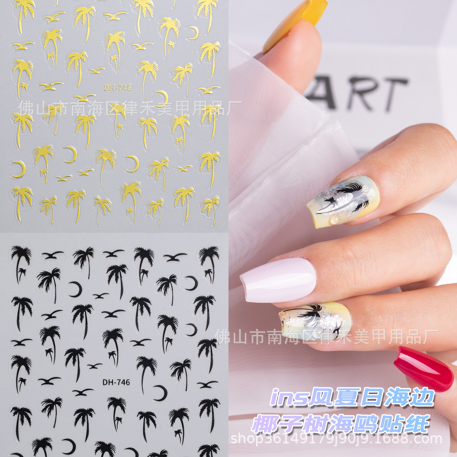 国境を越えた新型夏風海辺ヤシの木ネイルシール幻彩グラデーションカモメ箔押し爪シール