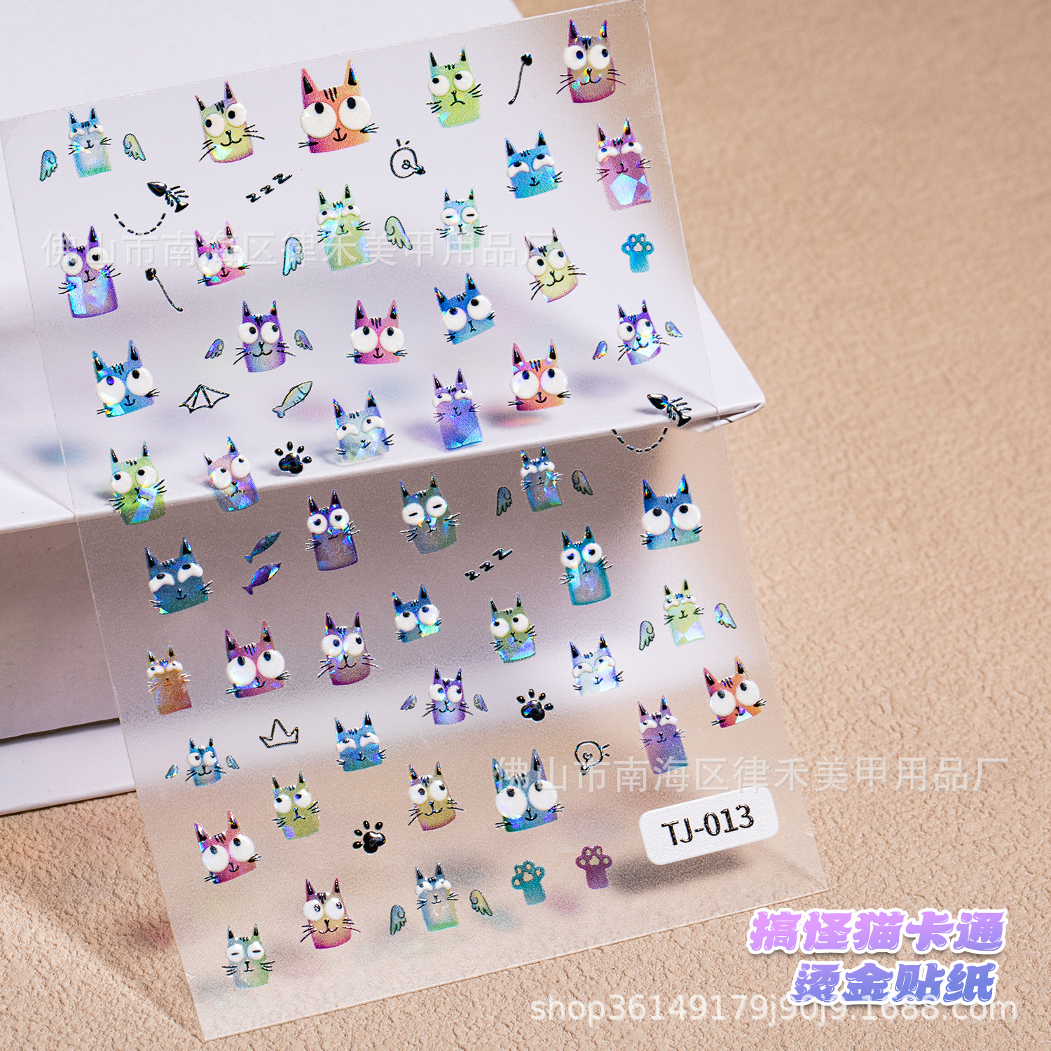 国境を越えて人気ins箔押しKT猫純色かわいい透かし彫り愛アニメ3dバックゴムKT猫ネイルシール