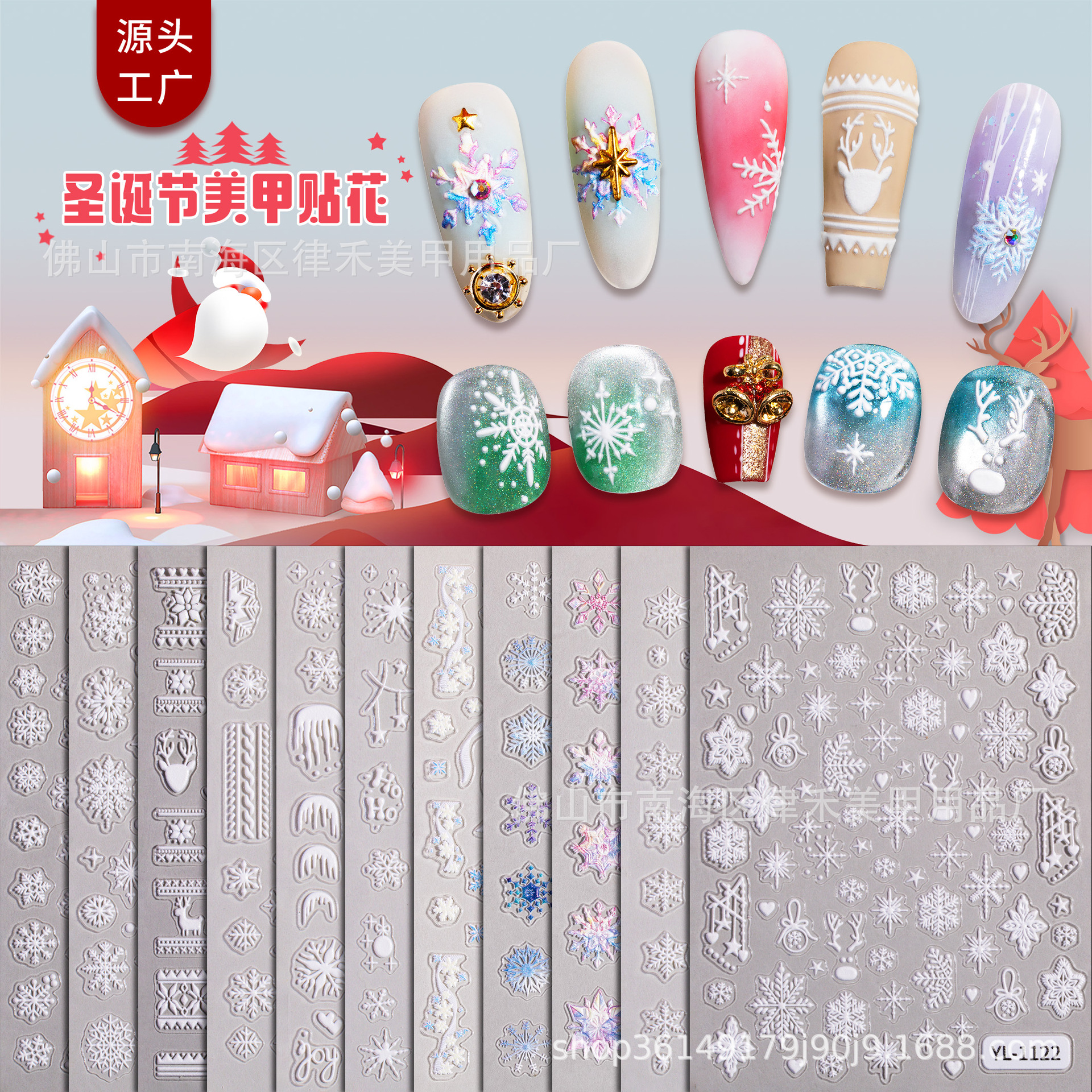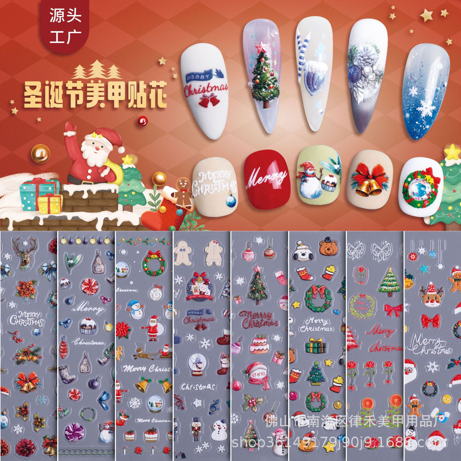 クロスボーダー人気5Dレリーフクリスマスネイルステッカークリスマスツリーの鈴雪花サンタクロースレリーフ爪ステッカー