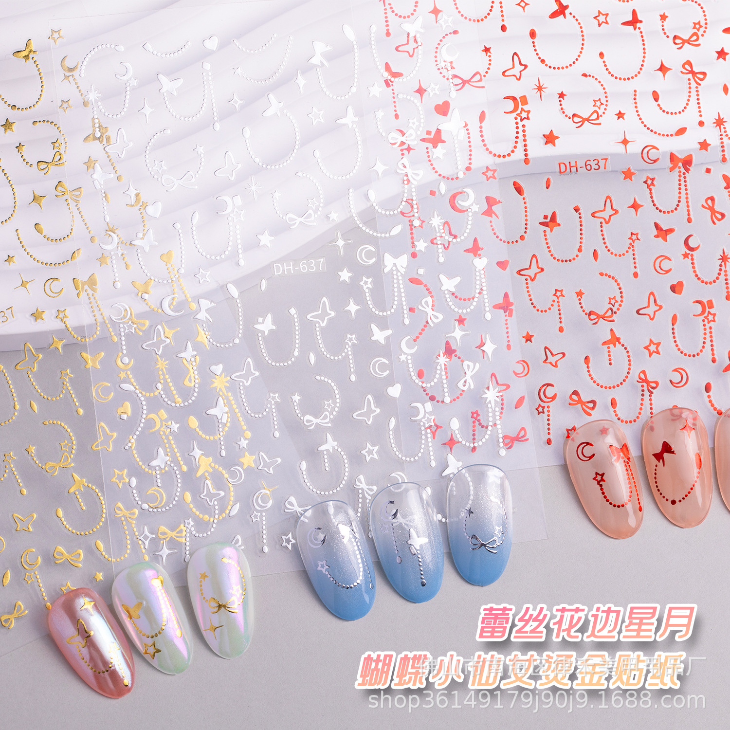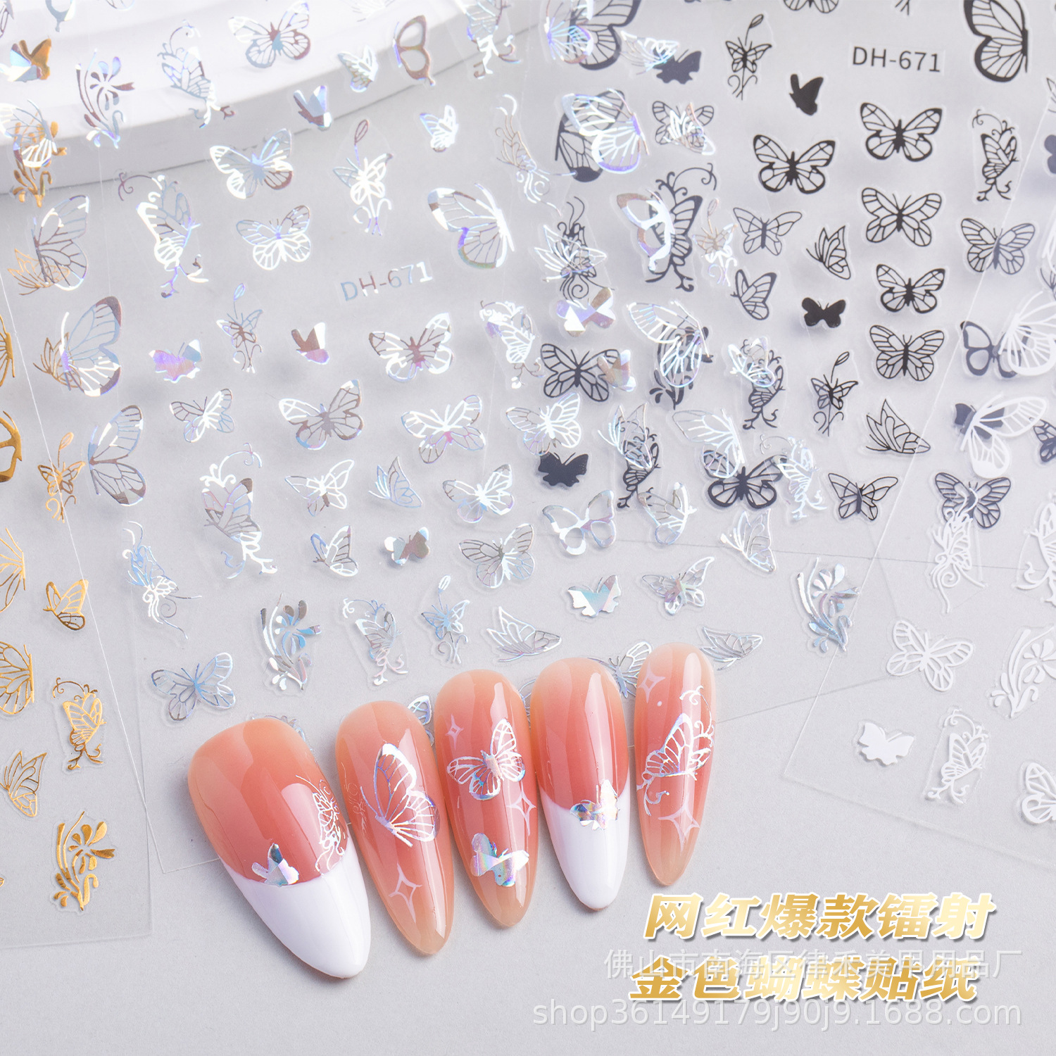 インターネットセレブ人気レーザーバタフライネイルアートステッカー中空ゴールデンレーザーファンタジー液体ネイルステッカー粘着裏地付き