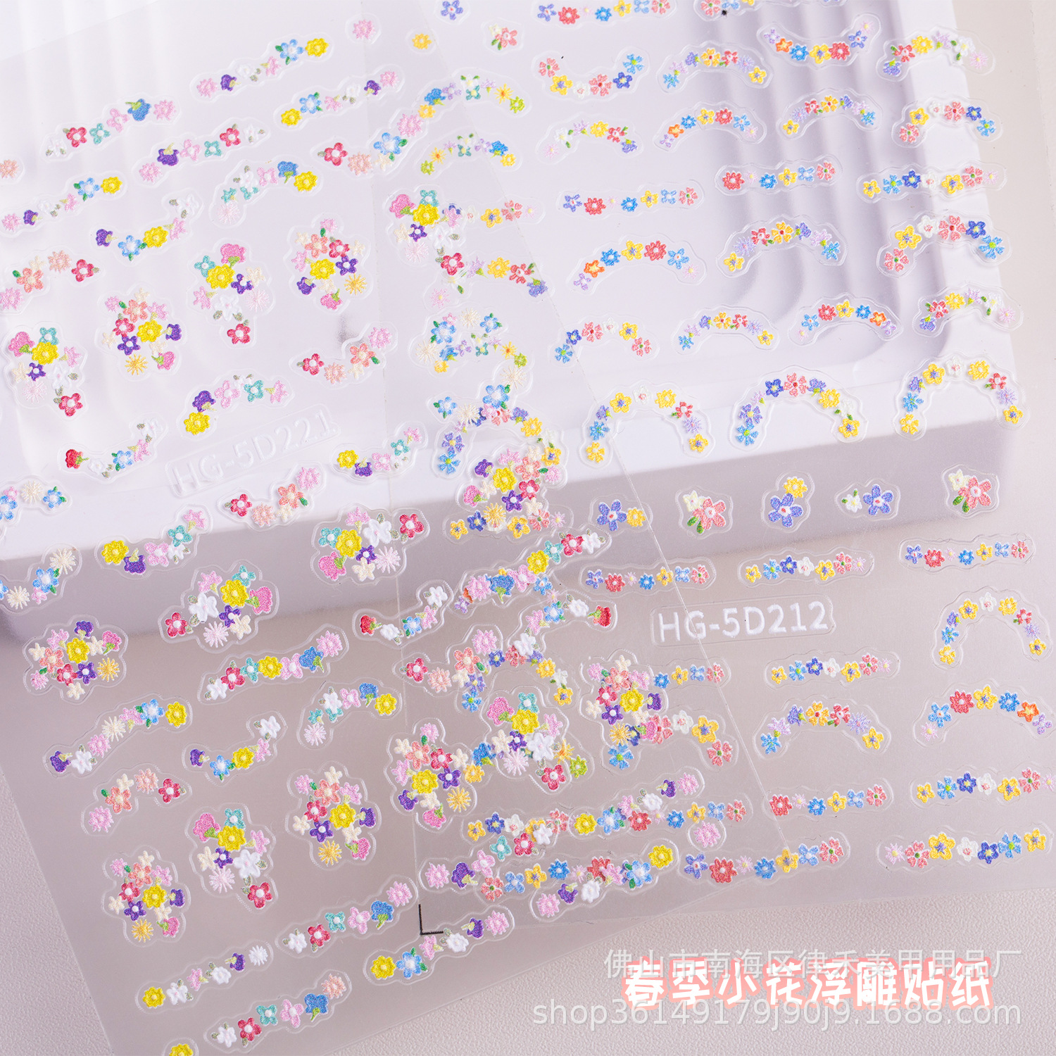 ネット赤爆金立体浮き彫り小花フランスシールドーパミンカラー小砕花花びらネイルシールアクセサリー