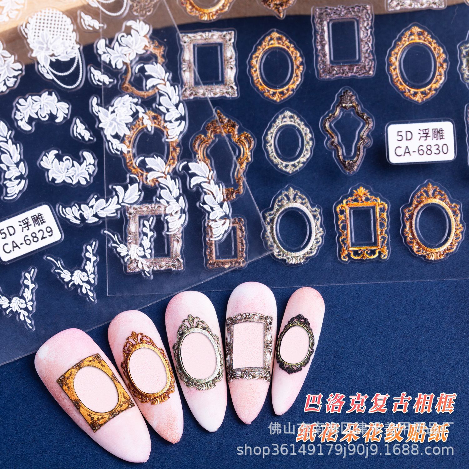 クロスボーダー新型バロックレトロフォトフレーム花柄ネイルステッカー