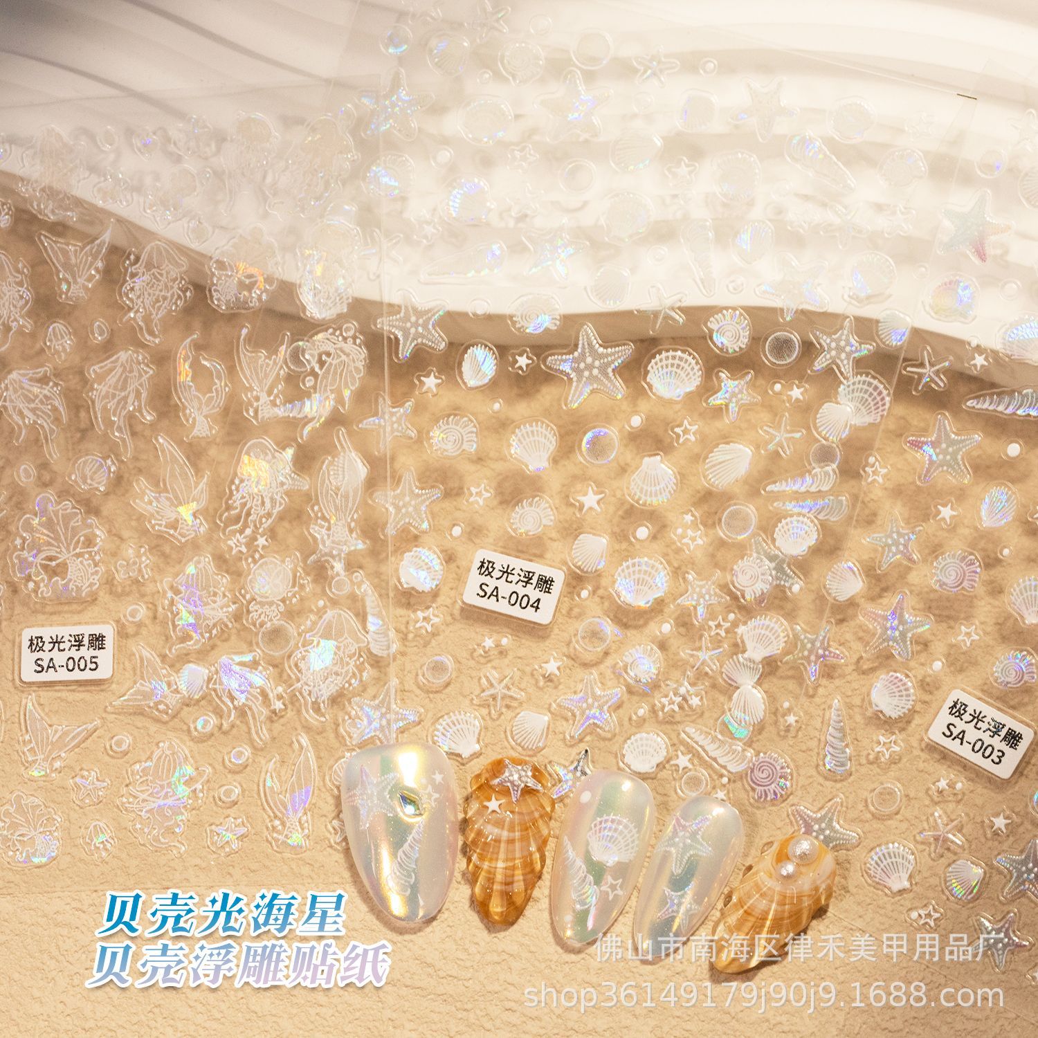 クロスボーダー爆発貝殻海星幻浮き彫りネイルシールカラーフラッシュ透かし彫り星泡海螺帯背