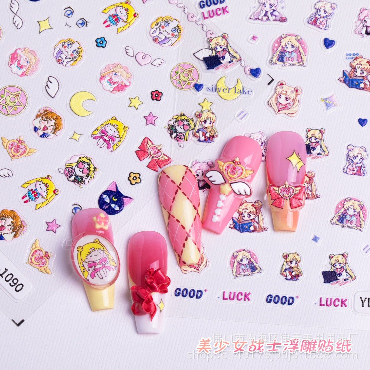 クロスボーダー人気美少女戦士レリーフネイルステッカーかわいい甘い妹愛星月立体ネイルステッカー