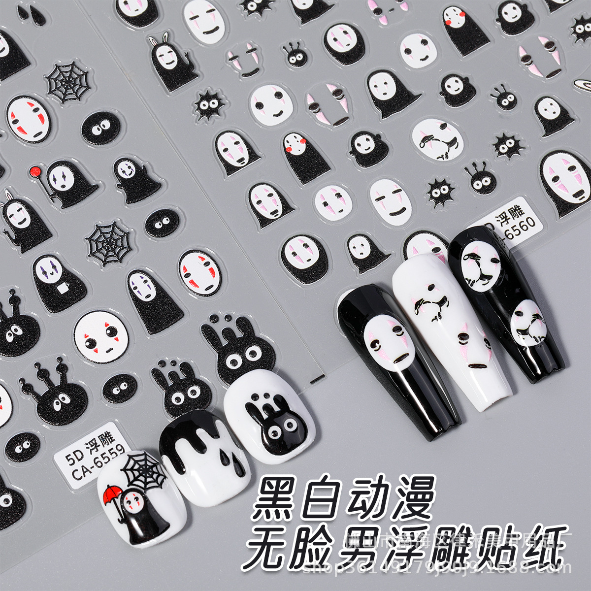 日系5Dレリーフ立体白黒アニメ顔なし男性ネイルシールかわいい笑顔クモアニメネイルシール