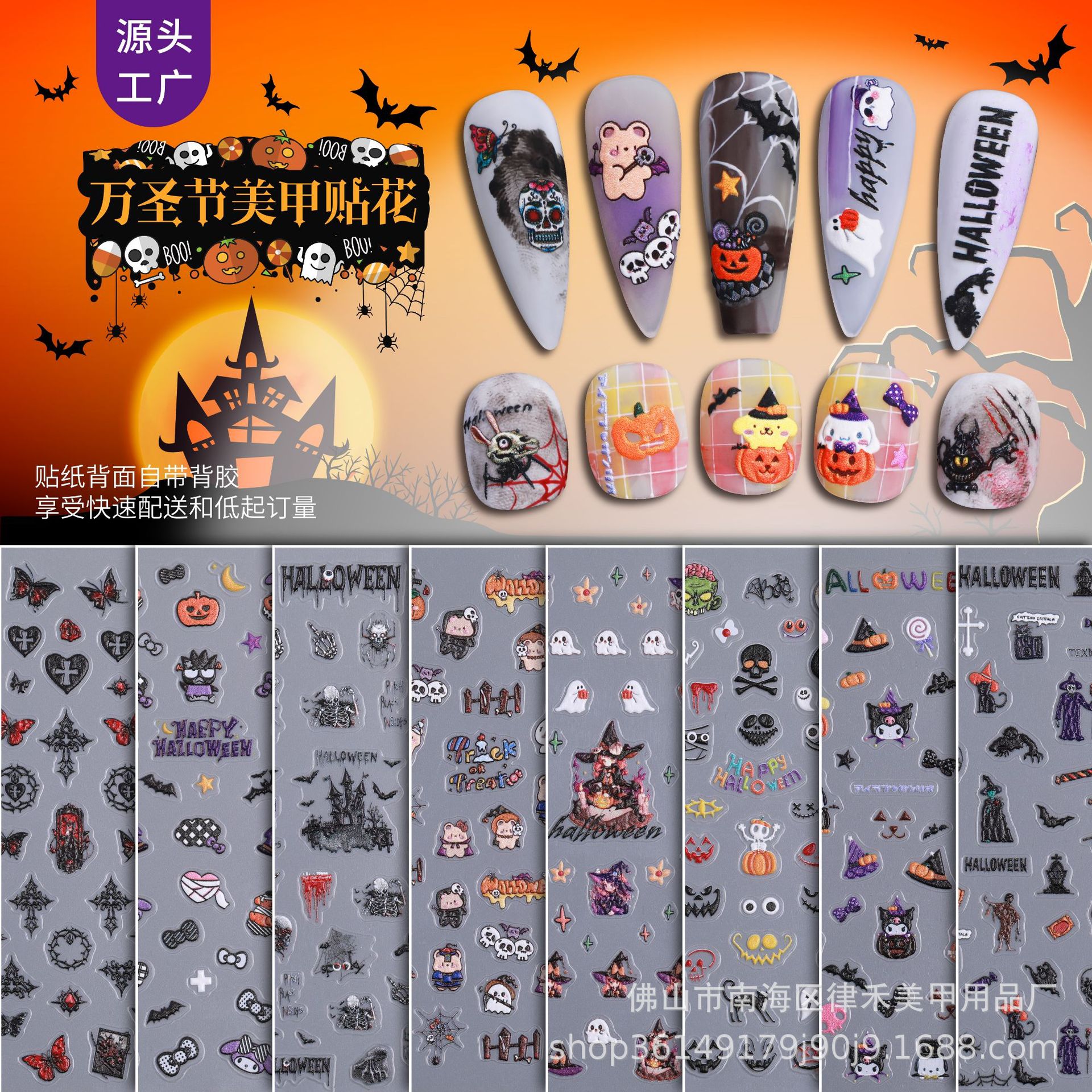 国境を越えて人気のあるハロウィーンのネイルステッカーは、漫画の魔女の幽霊カボチャの暗黒風頭蓋の背中の爪を浮き彫りにした