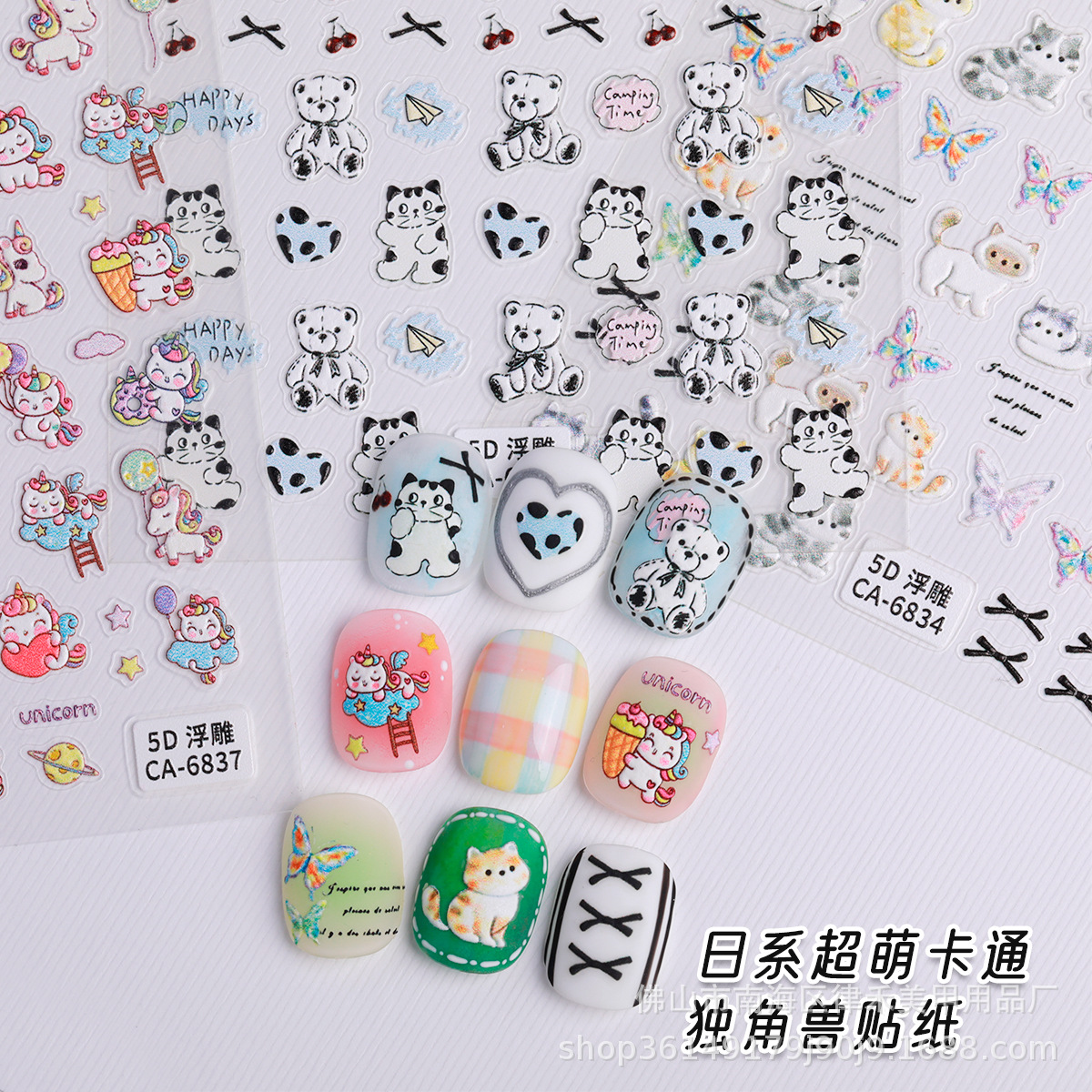 日系かわいいアニメ超萌えユニコーンネイルシールかわいい猫愛熊落書きネイルシール