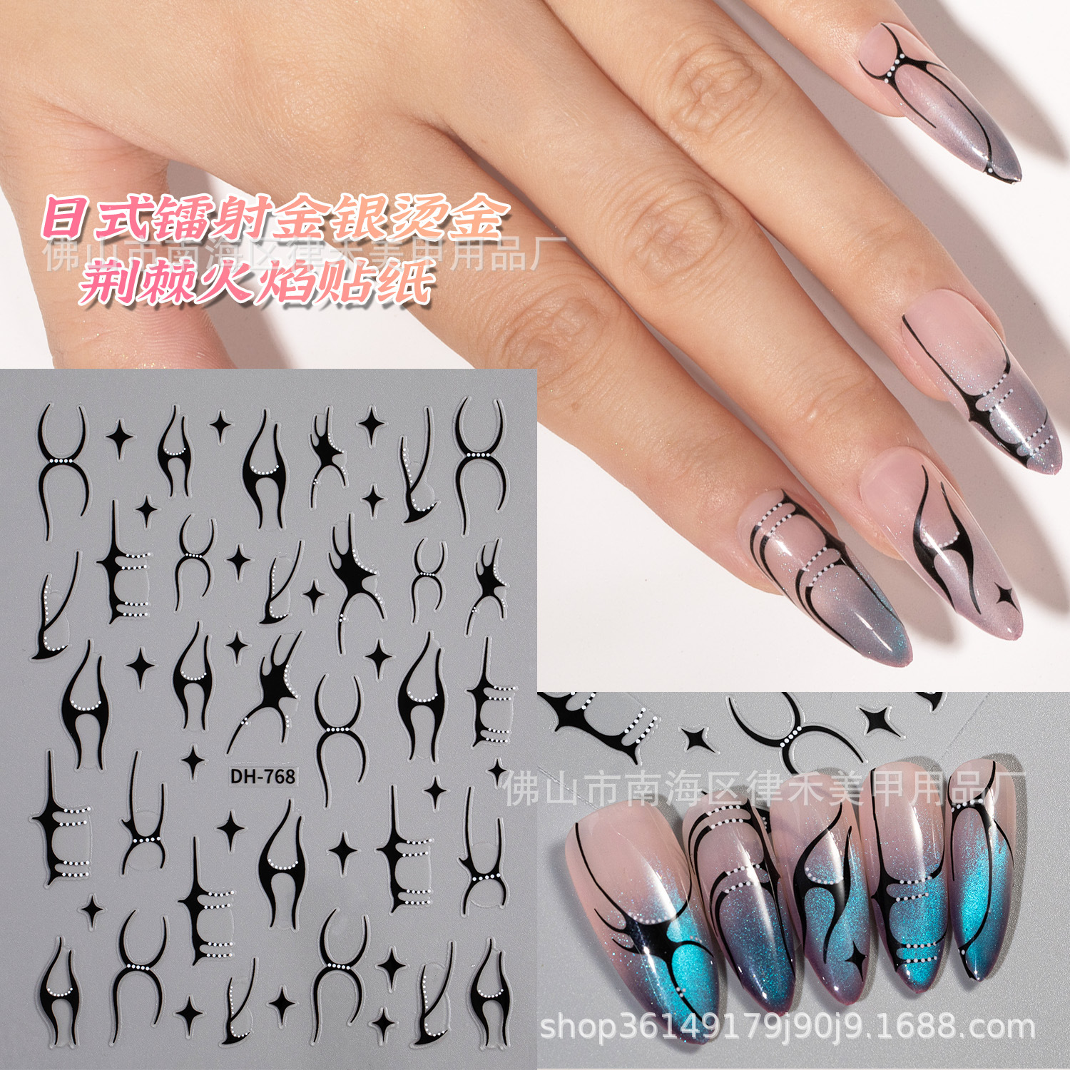 新型欧米のレーザーと金銀と金のイバラの炎のネイルシールの不規則な幻彩の液体の爪のシール