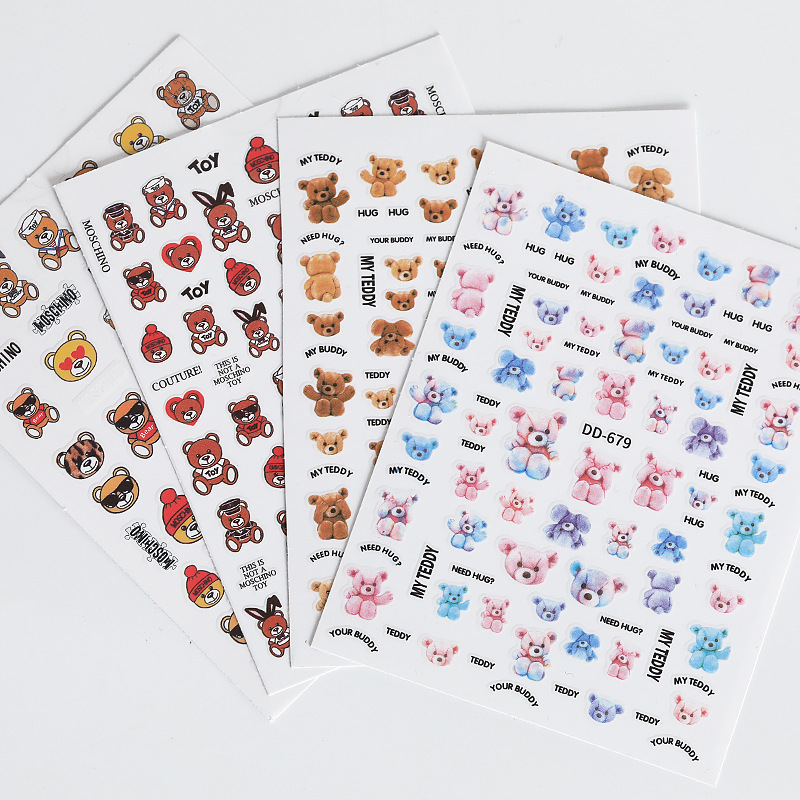 日本系ネイルステッカー漫画かわいい熊テディベア愛熊蒙眼サングラス熊英語アルファベットシール