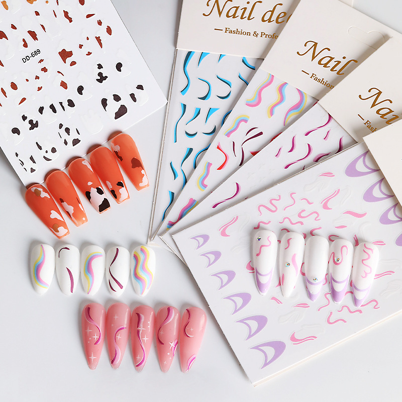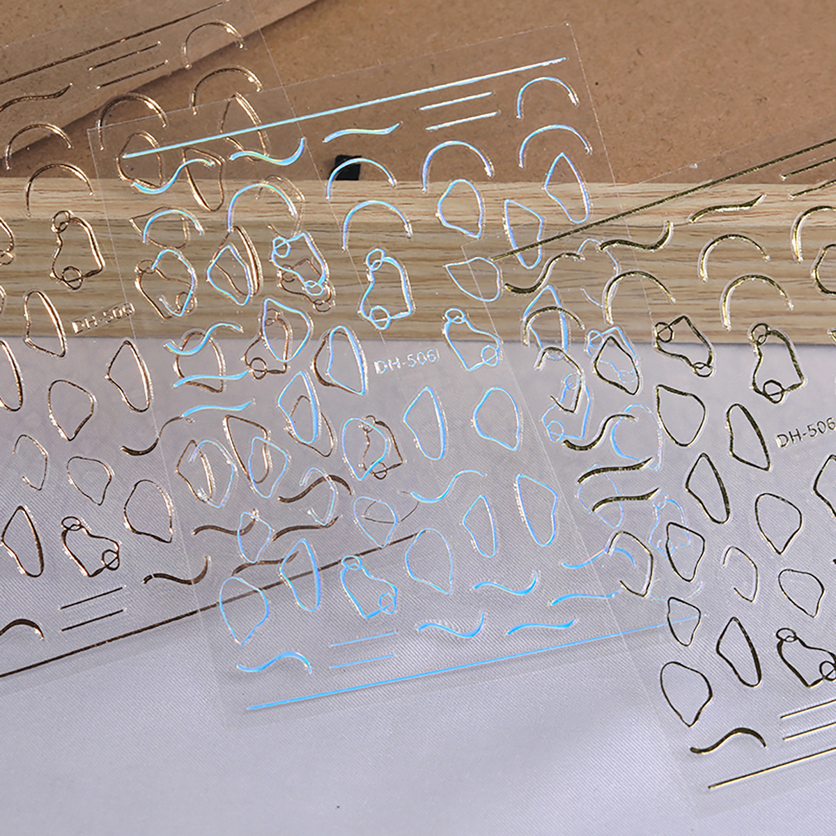 新しい3dネットレッドネイルシールの立体レーザー透かし彫りの幾何学的な線の不規則な模様の爪のシールの装飾