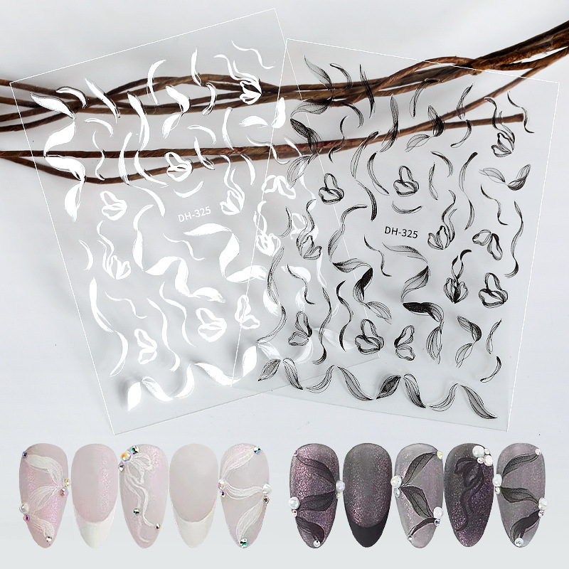 新しい日本の清新なネイルシール白い花の黒いバラの花の枝の葉の愛のアルファベットのステッカー