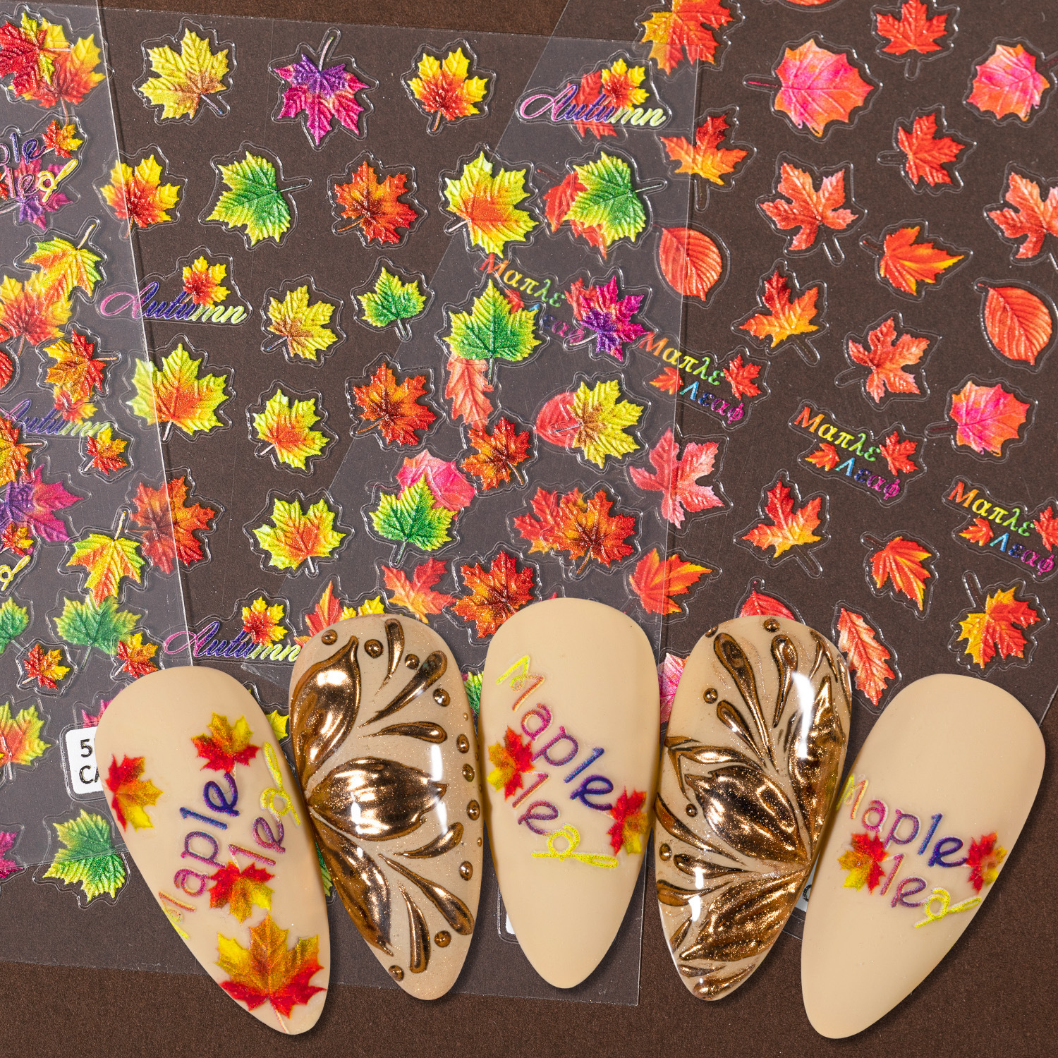 5dレリーフ立体枯叶落ち叶可爱い子リスキノコかぼちゃの枝叶ナッツ英文字爪ステッカー