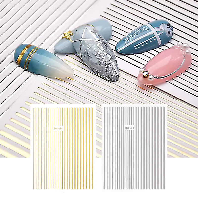 新しいネイルアートラインのステッカーの多色のカラフルな白黒のピンクの青い直線の縞の蛍光の箔押しの線の爪の装飾