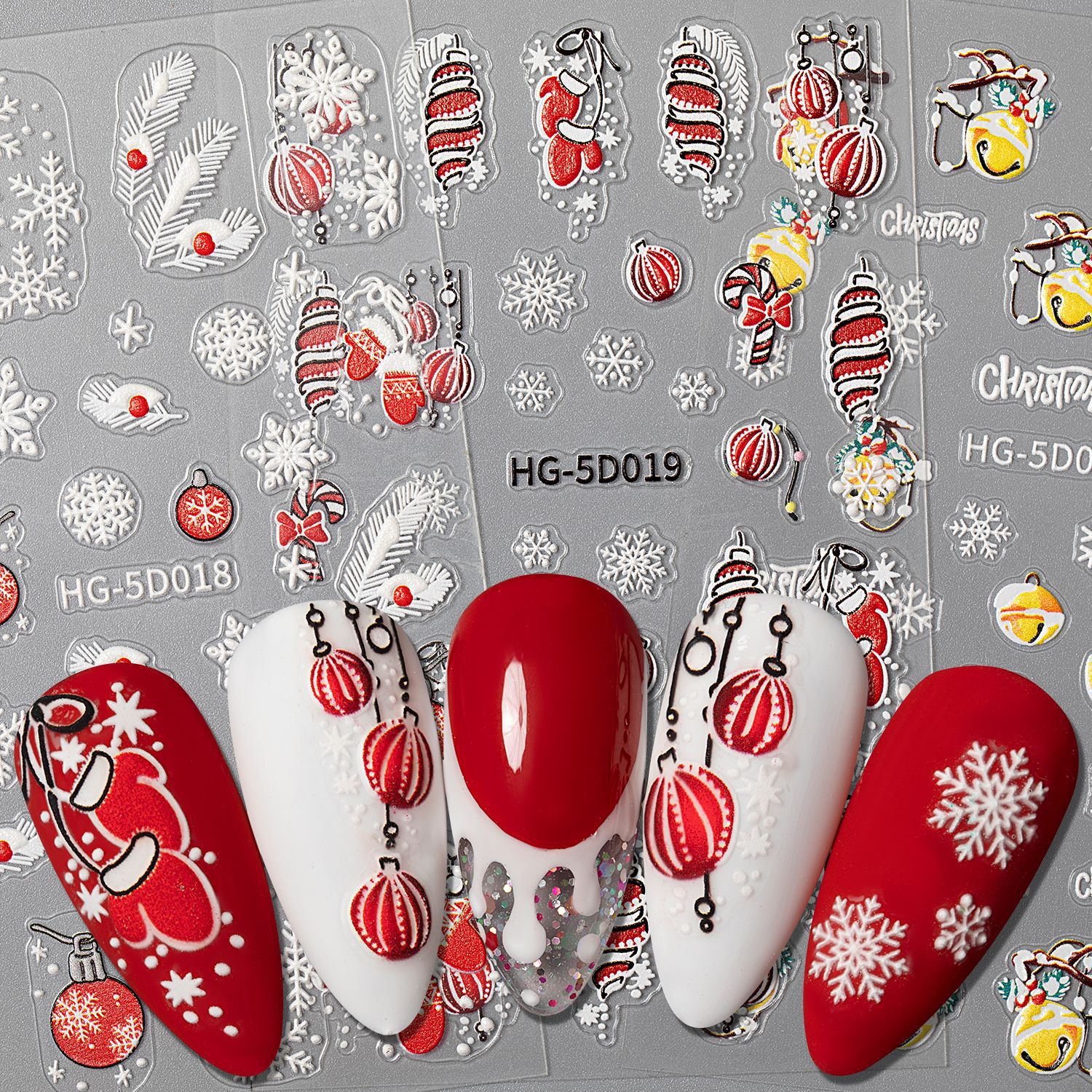 5dレリーフ立体クリスマスシール雪花手袋カラーランプ提灯鈴雪だるまグラス英語文字ネイルシール