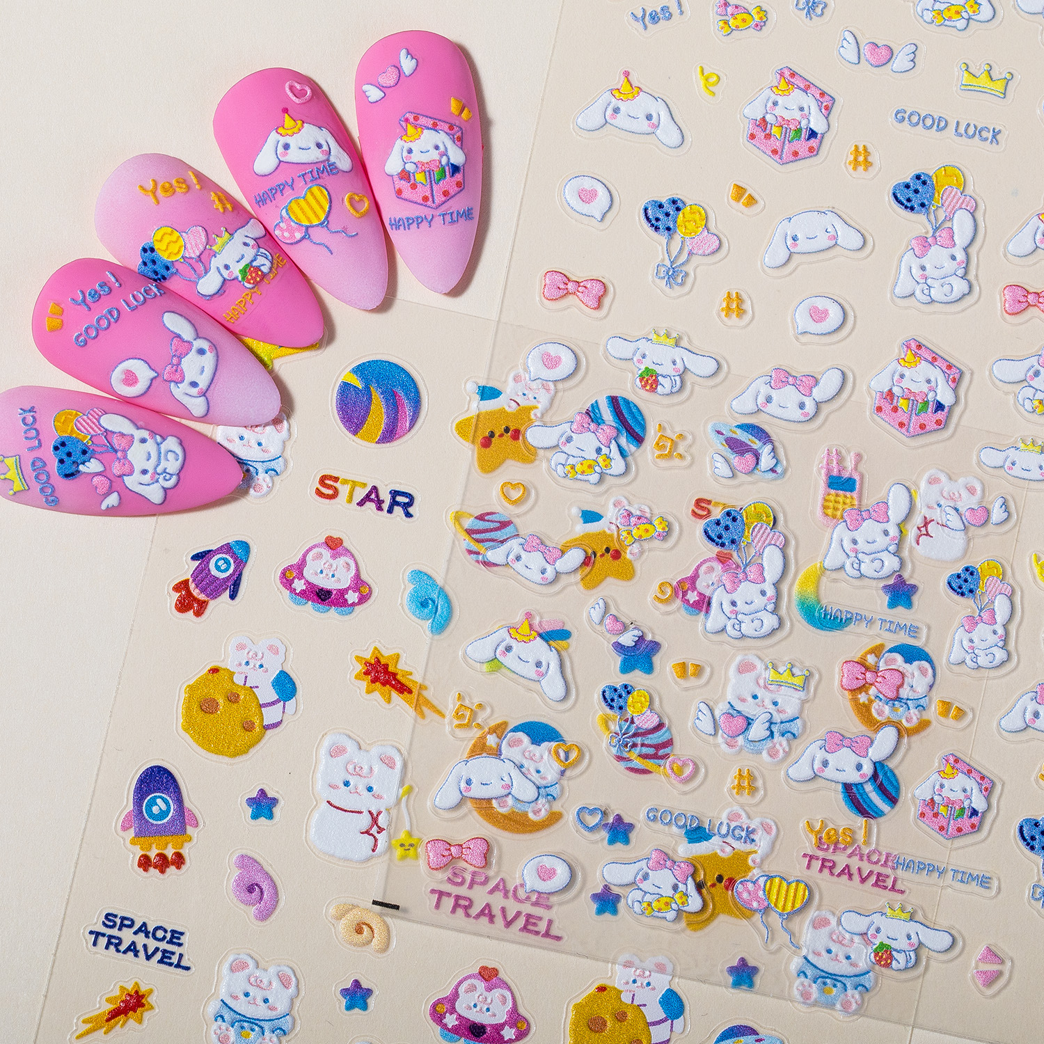 5d浮き彫り立体ネイルシールかわいい白熊宇宙船ロケット星愛白兎蝶ネクタイシール