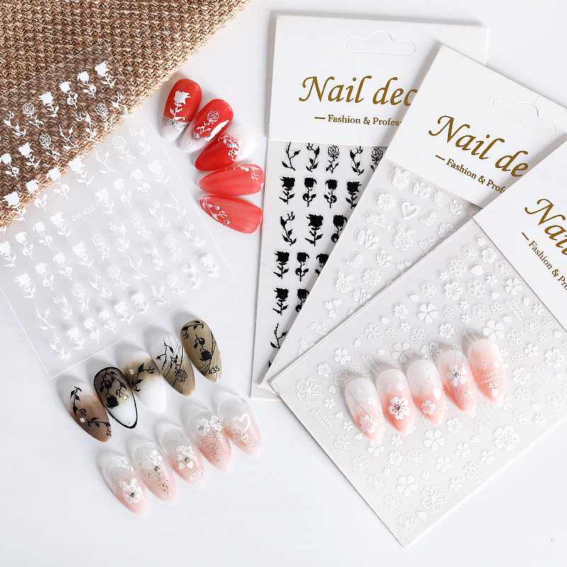 新品3dネイルステッカー咲く花ローズデイジーins風花白い花アルファベット英語爪ステッカー