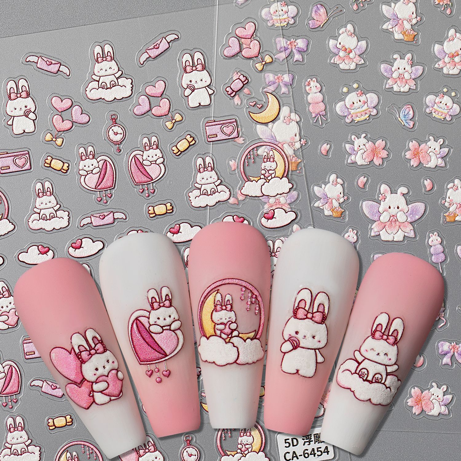 5dレリーフ立体シールかわいい白兎愛リボン花びら蝶カメラ月ネイルシール装飾