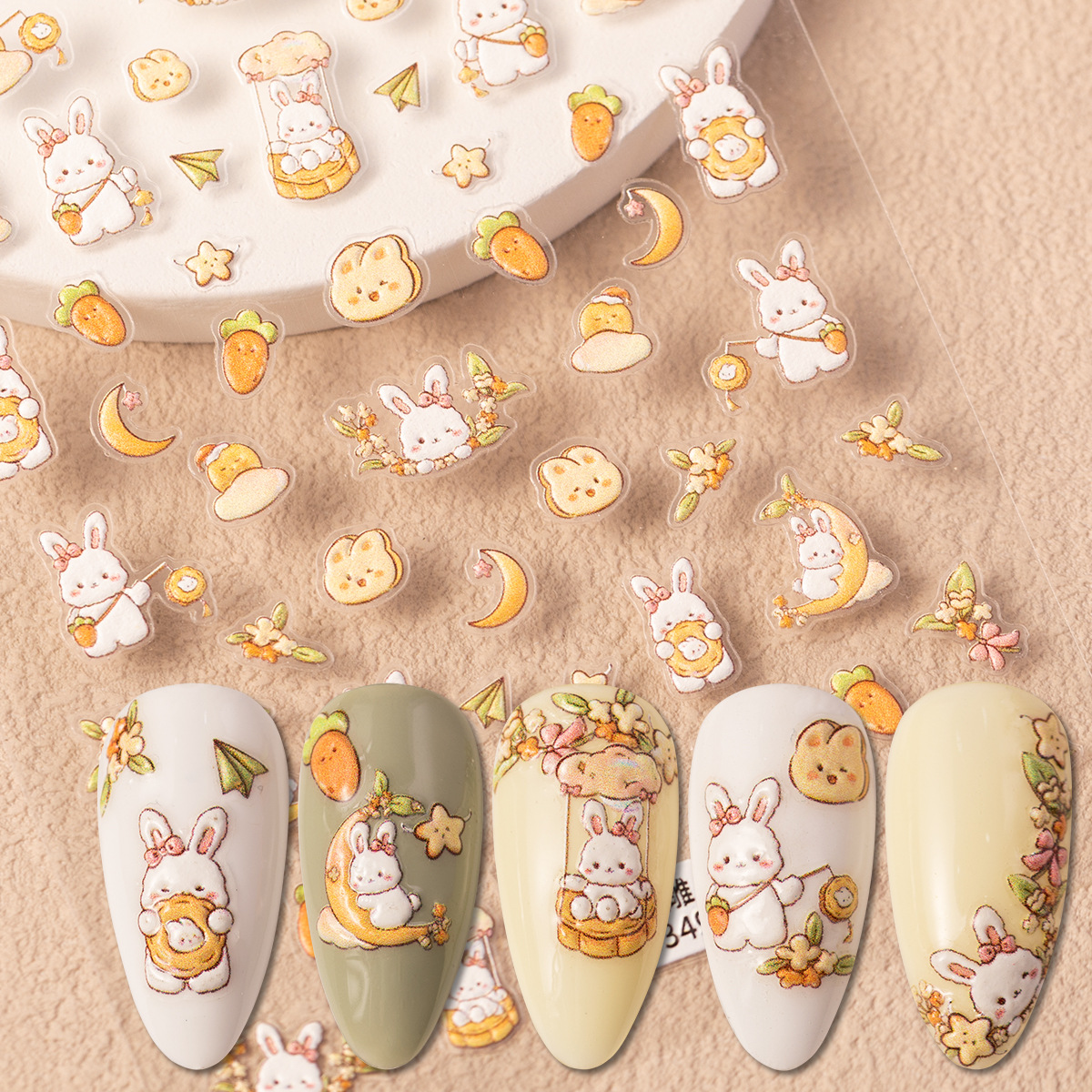 5dレリーフ立体ネイル中国風月かわいい玉兎古風小仙桃中秋月餅爪シール