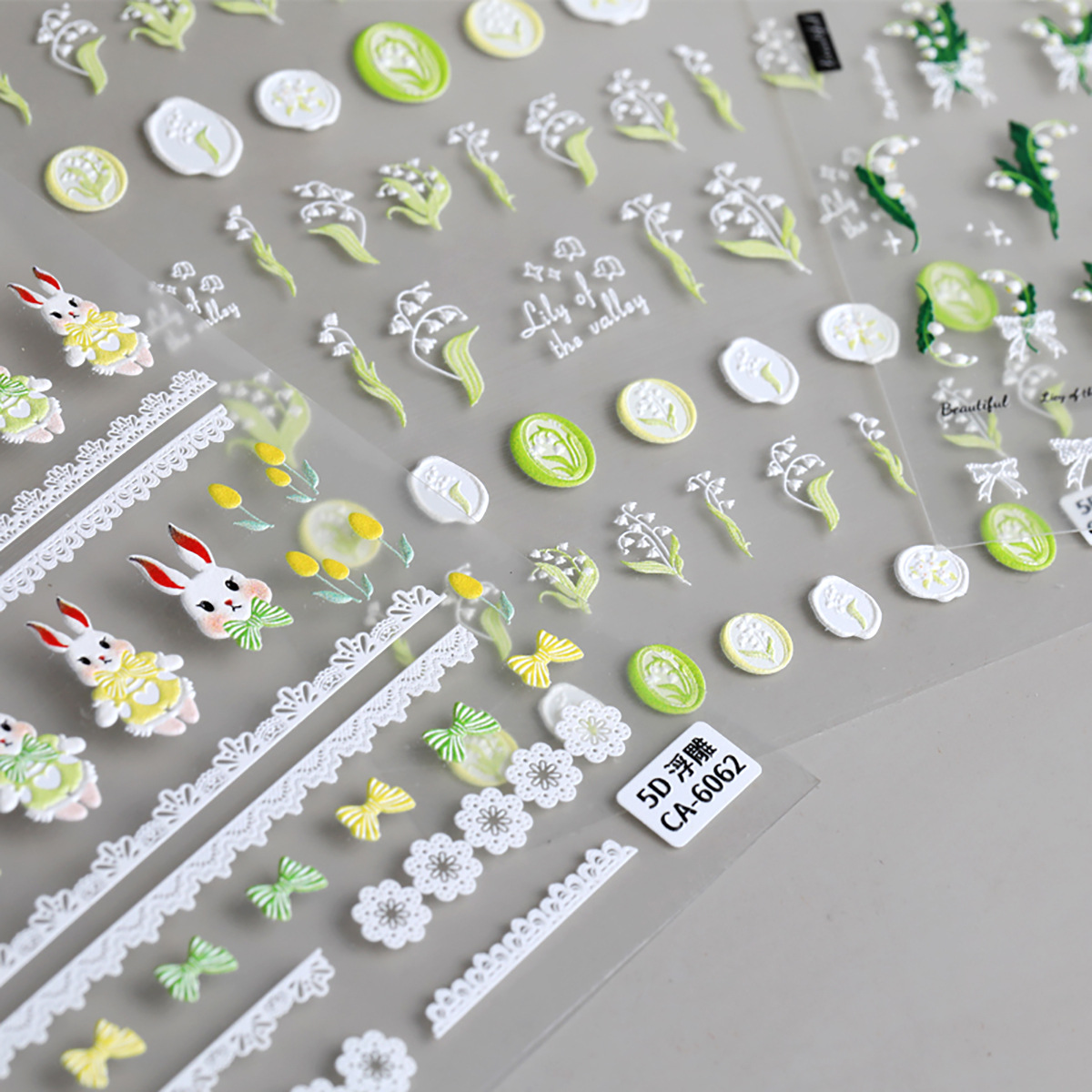 5dレリーフ立体樹脂うさぎちょう結び花チューリップステッカーネイルアートかわいい風ネイルステッカー卸売
