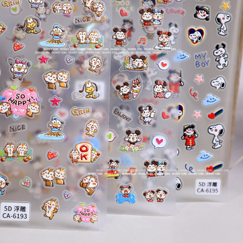 5dレリーフ立体ぼんやり萌えスヌーピー犬かわいいアニメ少女愛リス英語アルファベット爪シール