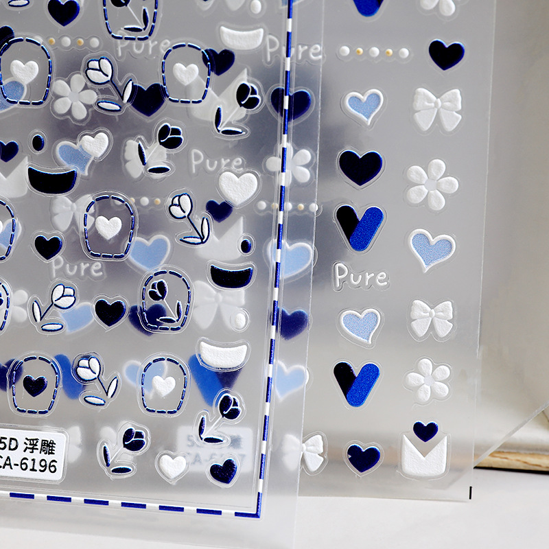 5dレリーフシール静かな青い花立体ネイルシール愛蝶ネクタイ五葉花白いアルファベットシール