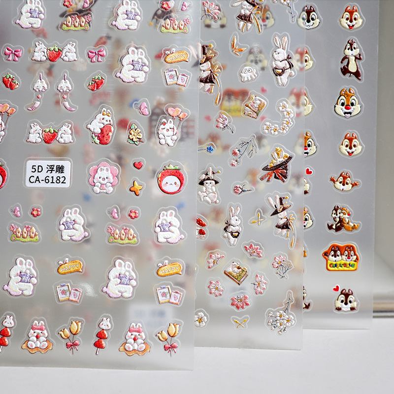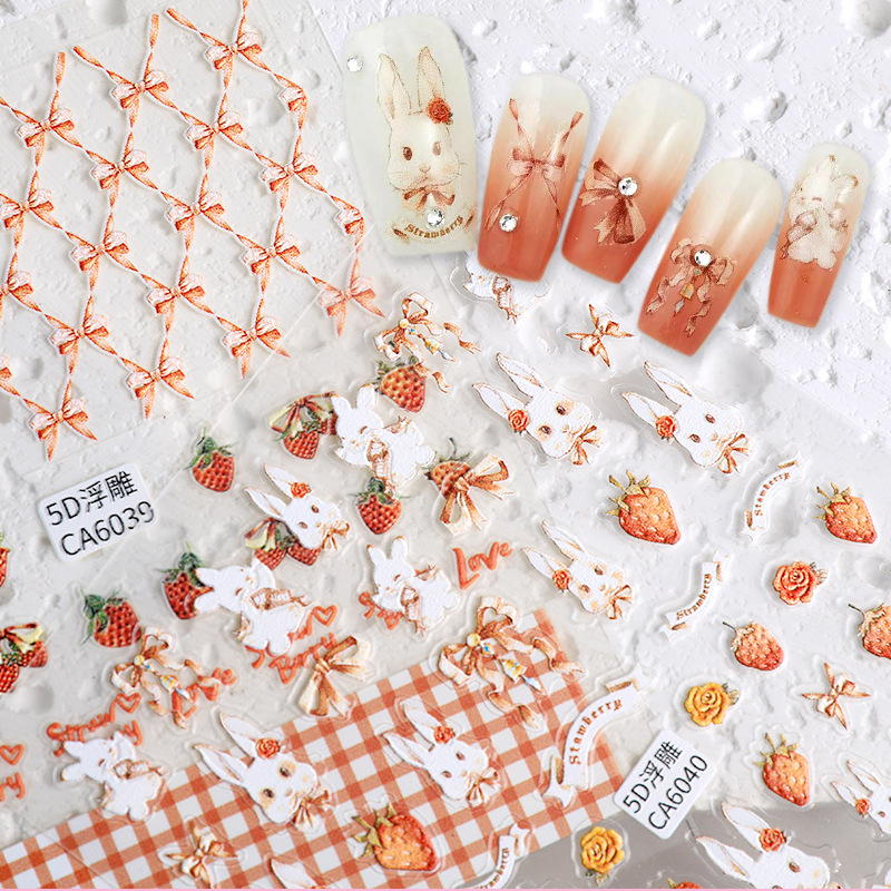 5dレリーフ立体漫画うさぎいちご甘くて可爱いロココレトロ爪ネイルシールデカールネイル