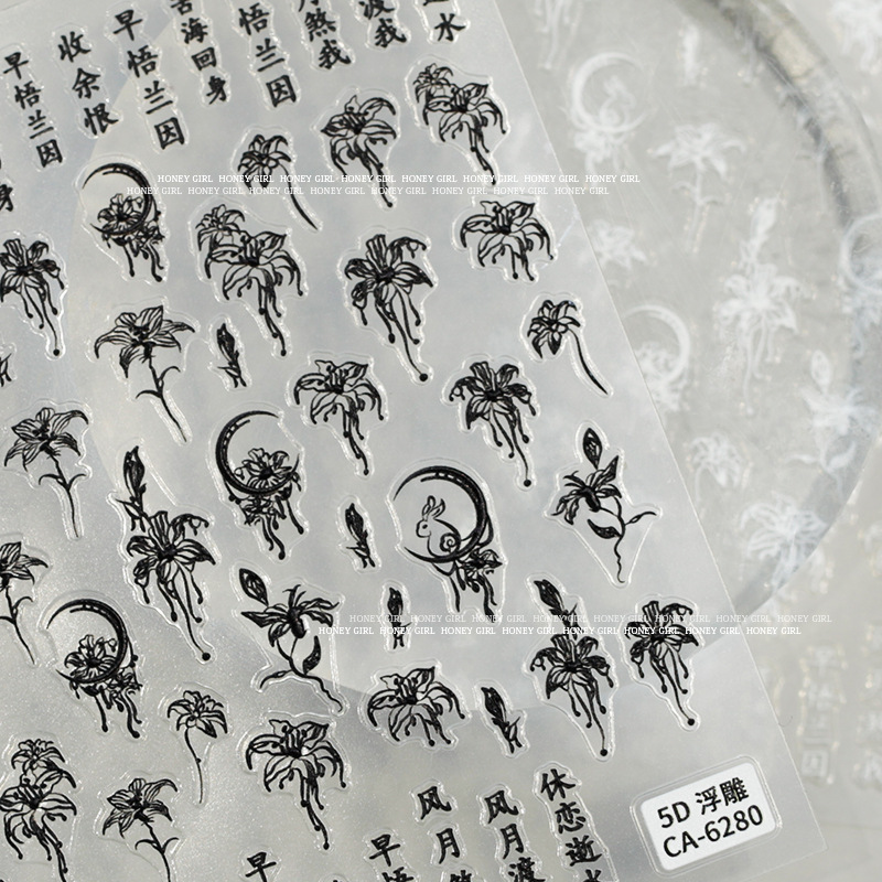 5dレリーフ立体古風白墨文字シール白墨墨書道風書道詩詞シリーズ爪シール