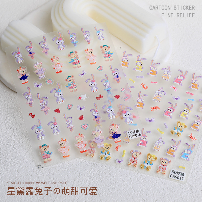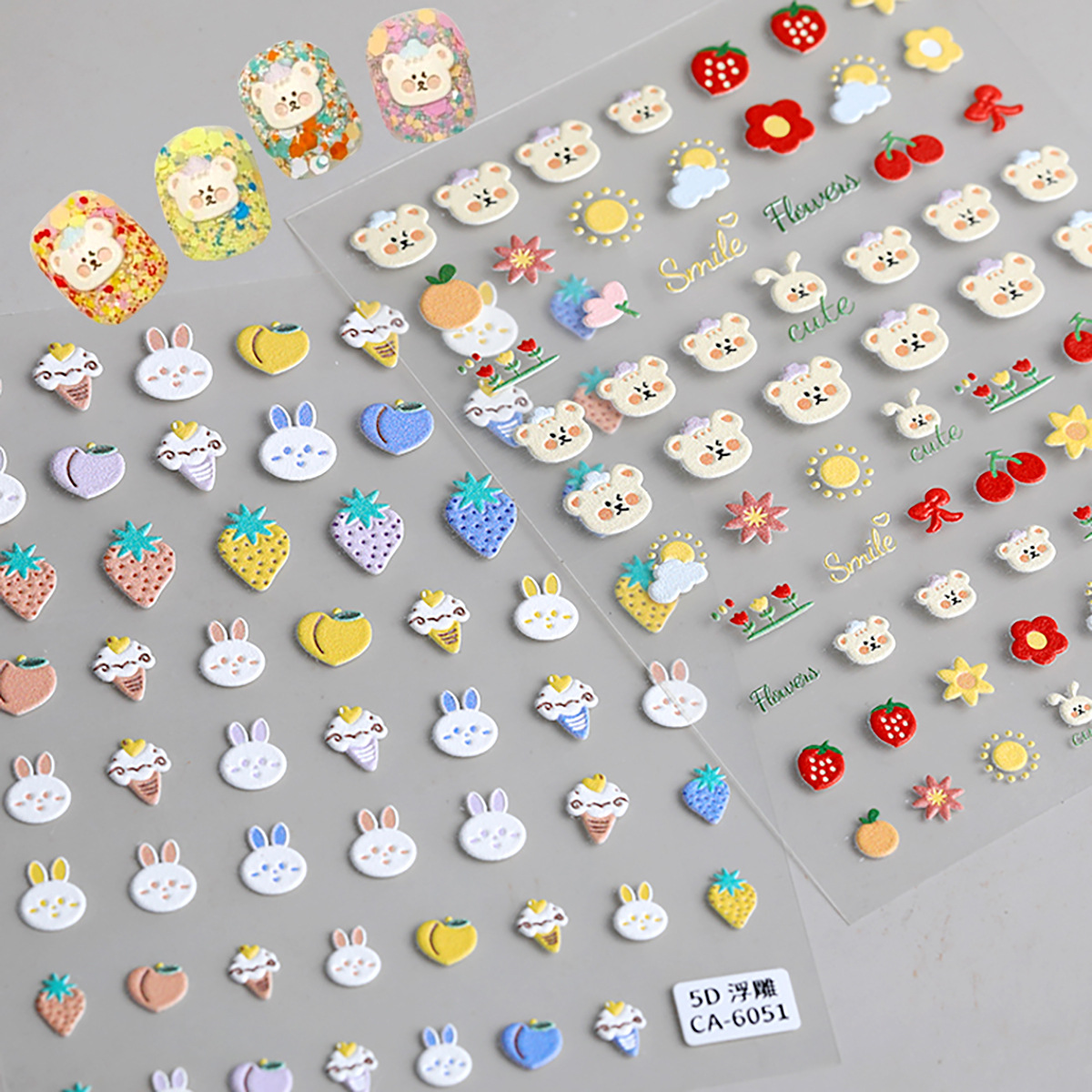 5dレリーフステッカーかわいいミニウサギいちごバラ星太陽いちご熊熊桃爪装飾