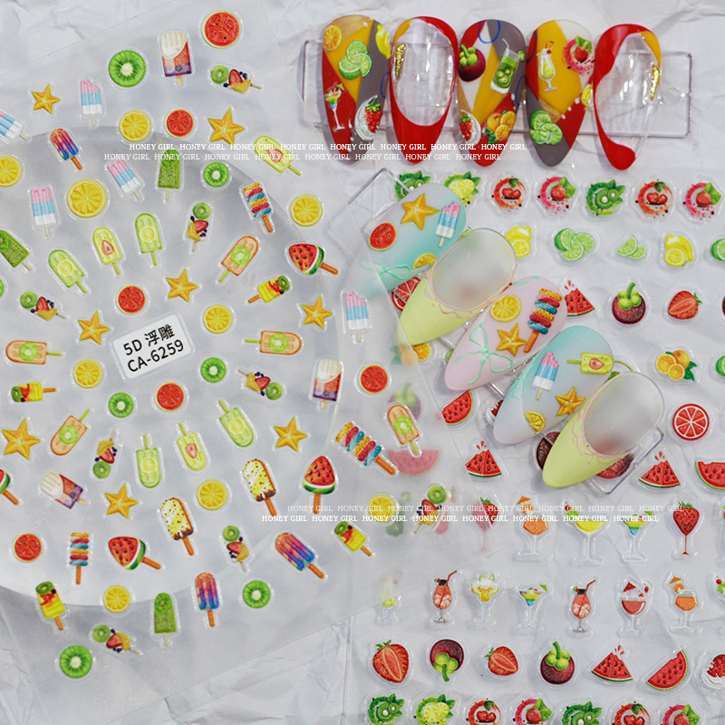 5dレリーフ立体果物スイカさくらんぼいちごレモンシールもちさくらんぼ爪装飾小模様シール