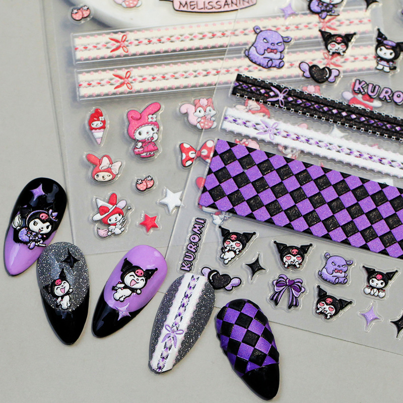 5dレリーフ立体漫画ネイルシール可爱い风サンリオ无痕ヘアクリップハートサイド髪饰りネイル