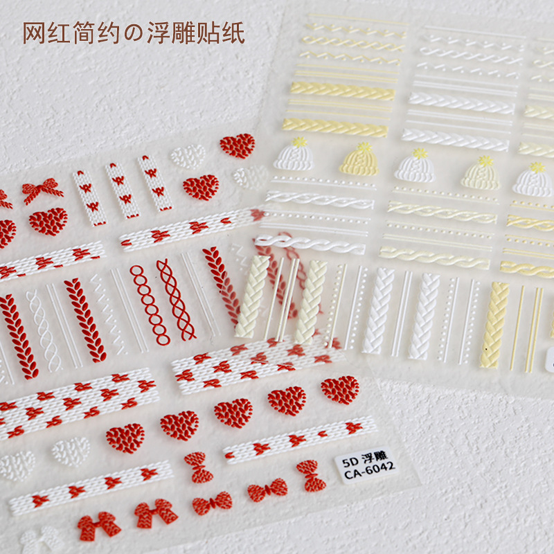 5dレリーフ立体新作ネイルシールハート蝶結びセーターべべ三次元毛糸模様ネイル