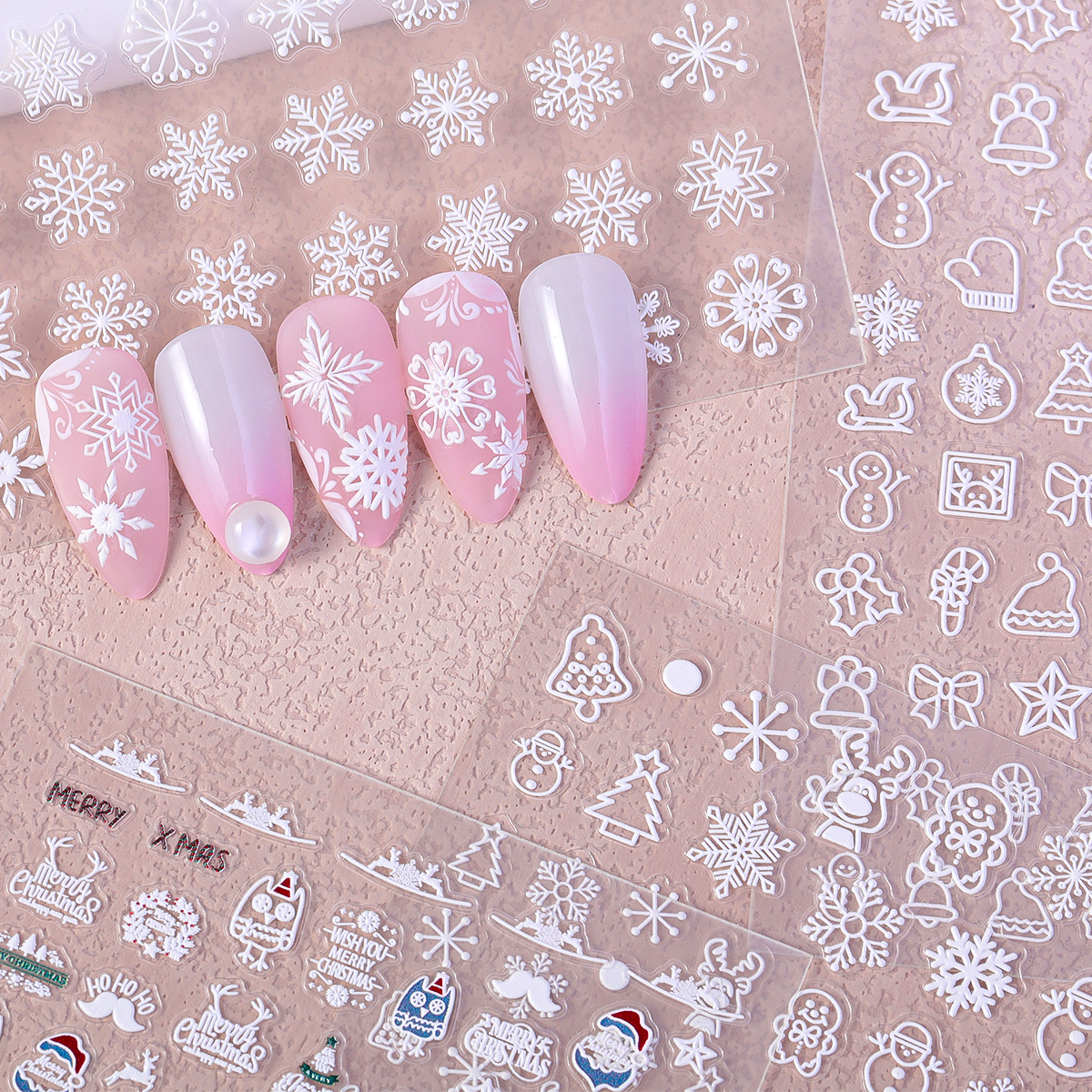 5d浮き彫りシール透かし彫り新白色雪花クリスマス秋冬ネイルシール愛ヘラジカ爪装飾