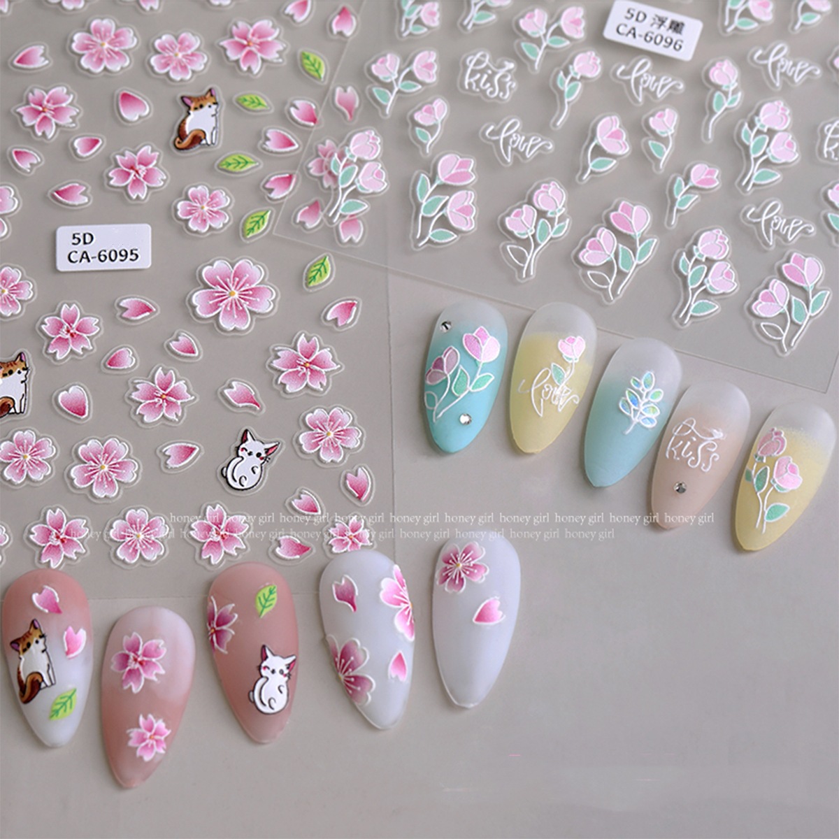 5dレリーフ立体人気ネイルバックシール花猫花ロマンチックチューリップ小清新爪貼り