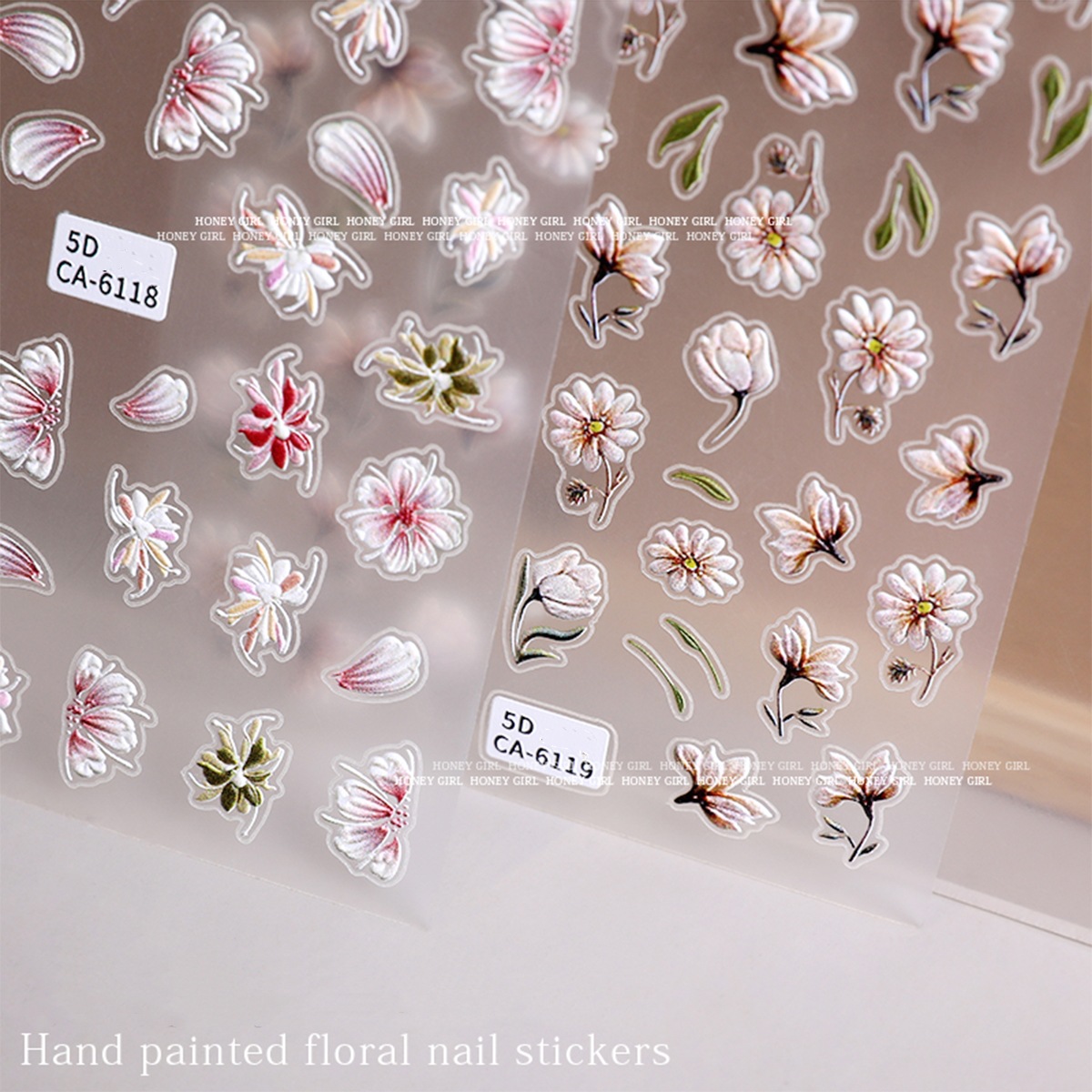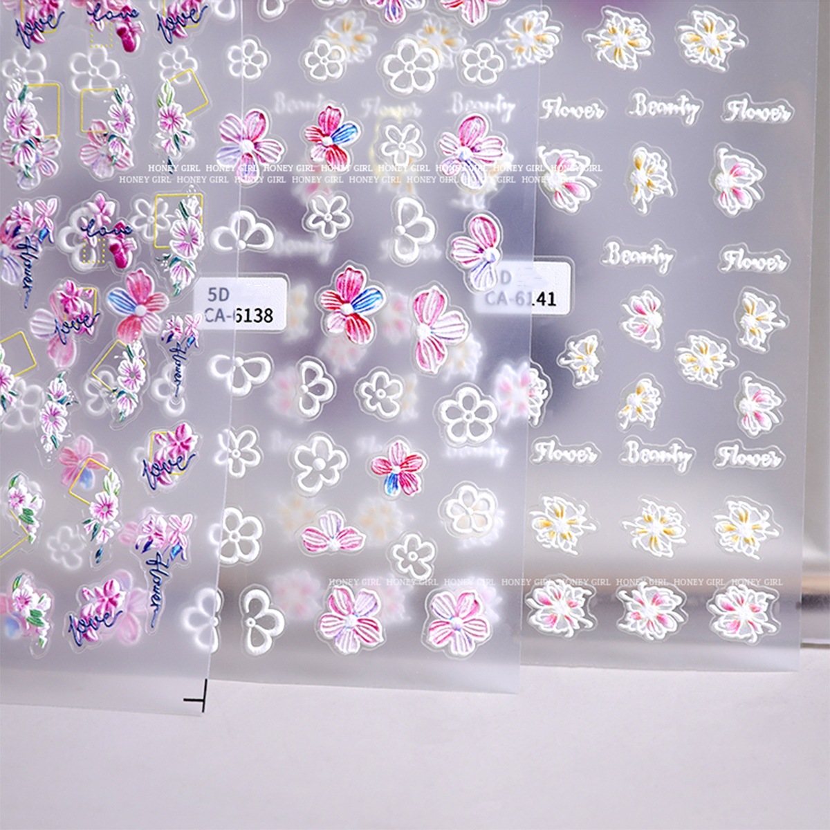 5d浮き彫り人気立体シール植物蝶装飾シリーズ浮き彫り彩色花シール爪貼りアクセサリー