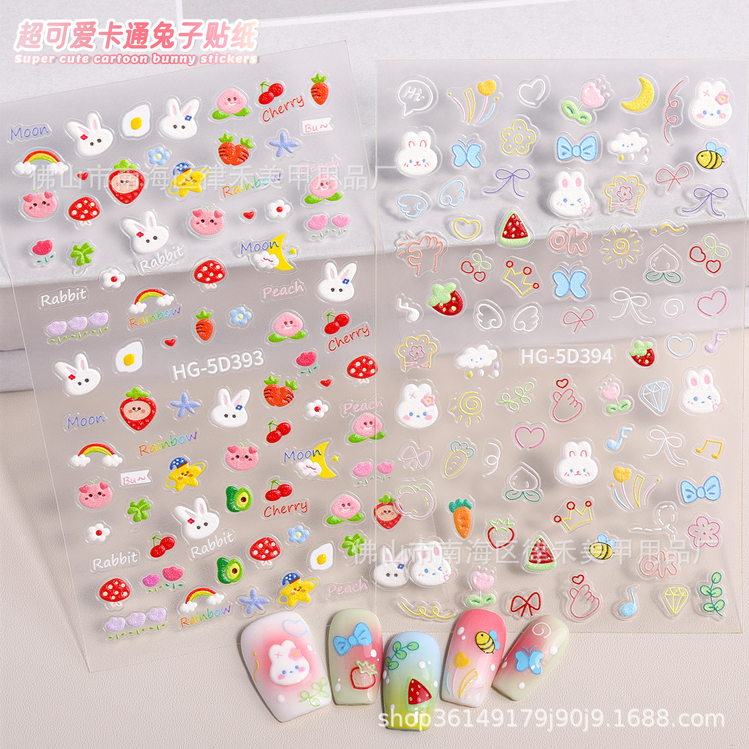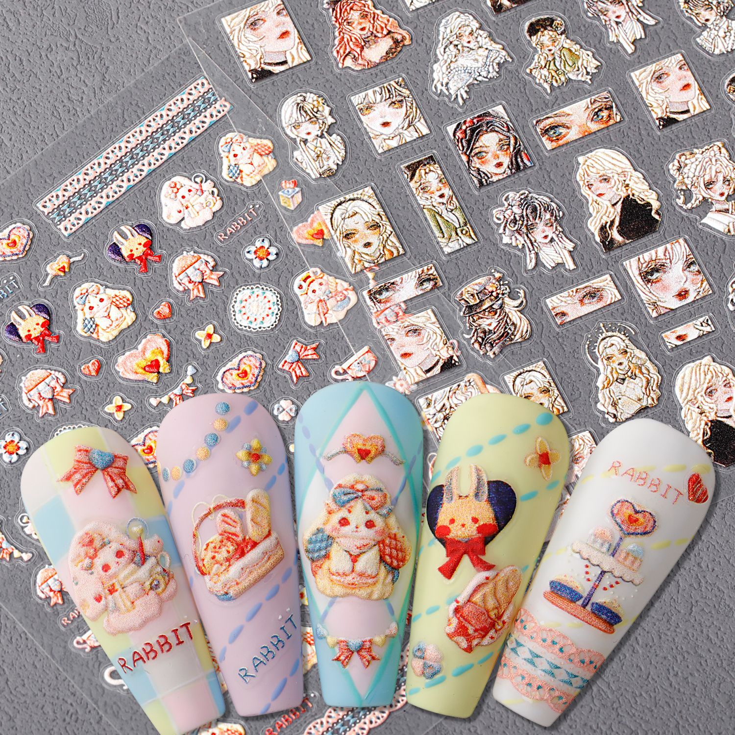 5dレリーフ立体ネイルシールかわいいウサギ愛蝶ネクタイ気質甘い女の子花柄アルファベットシール