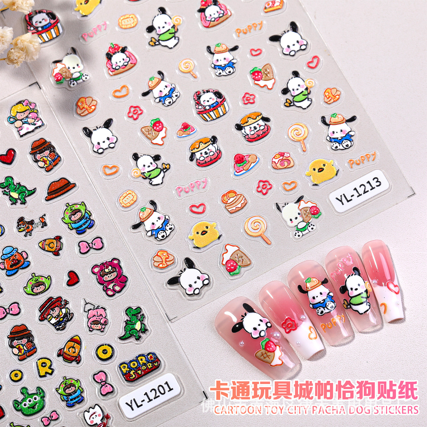 国境を越えた人気の漫画かわいいグルメパチャ犬ネイルアートステッカーエンボス加工超かわいい面白いネイルデコレーション