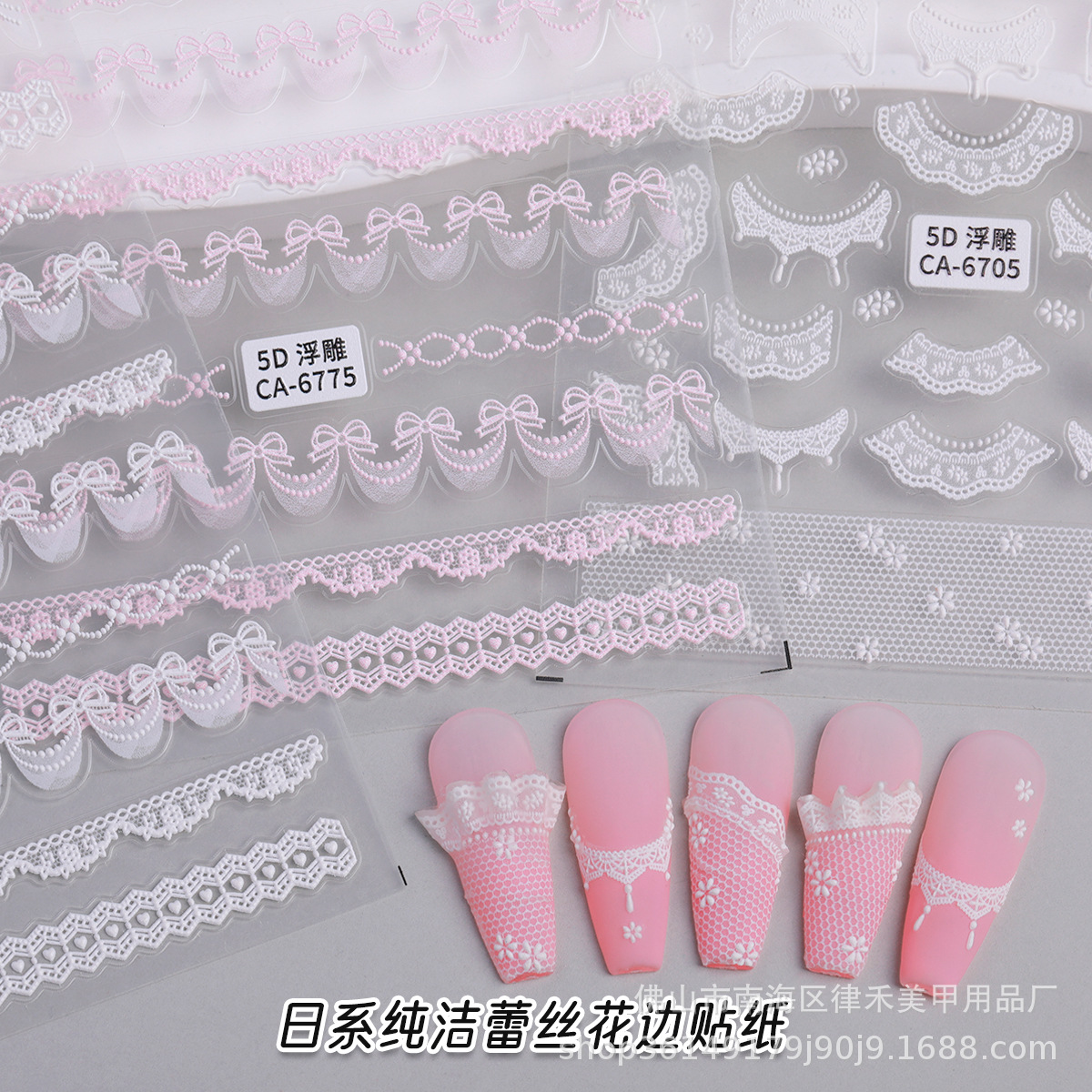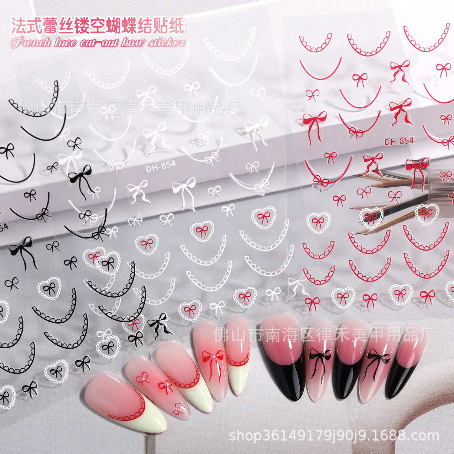 新しい日本の純粋なレースのネイルシールピンクの優しいセクシーな蝶結びのネイルシール