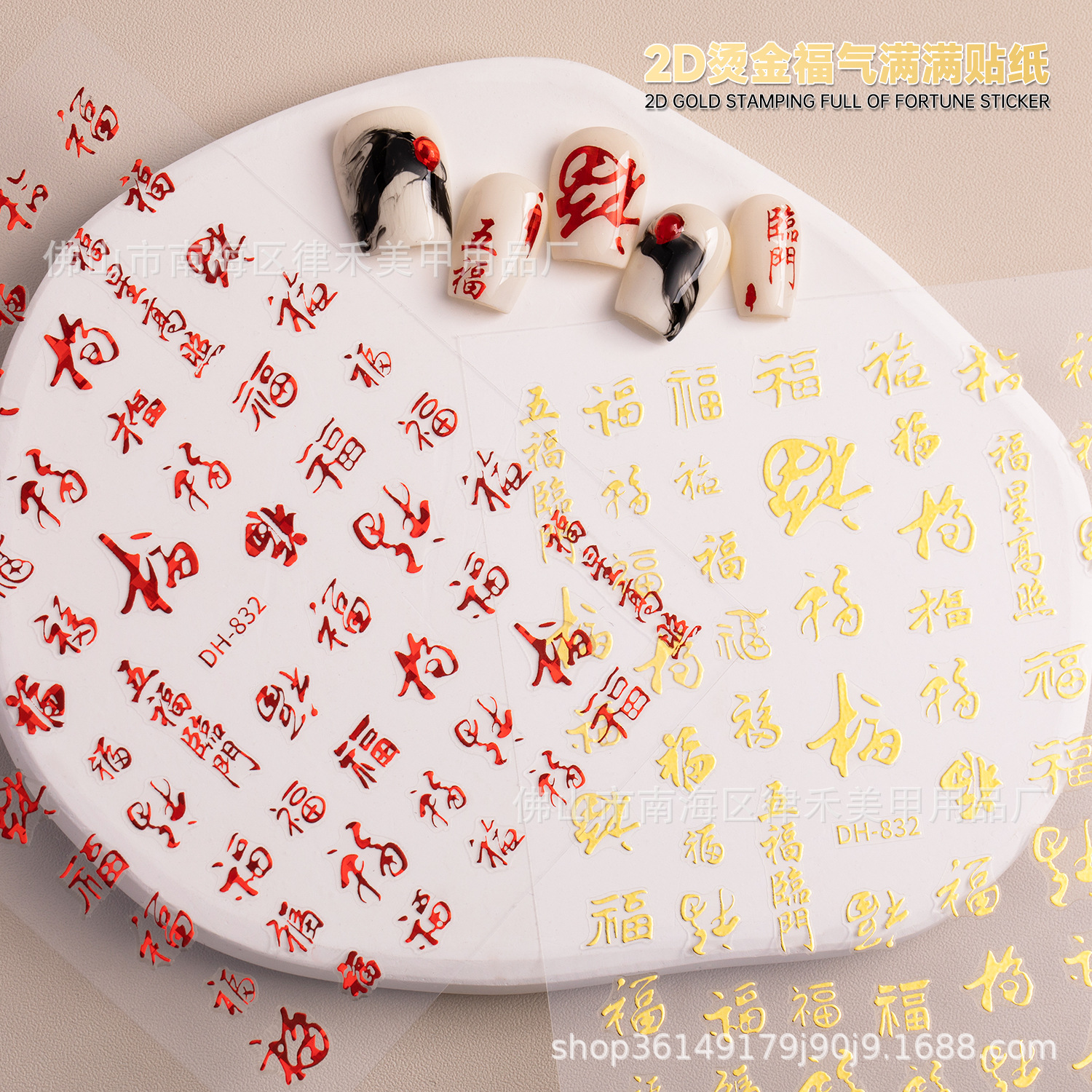 新春の新型の箔押し福はネイルシール2d五福臨門福星高照祝福爪貼り卸売り